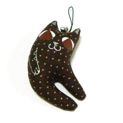 고추 처럼(^^;) 휘어져 있는 모양의 통통한 유연고양이 핸드폰줄입니다.
