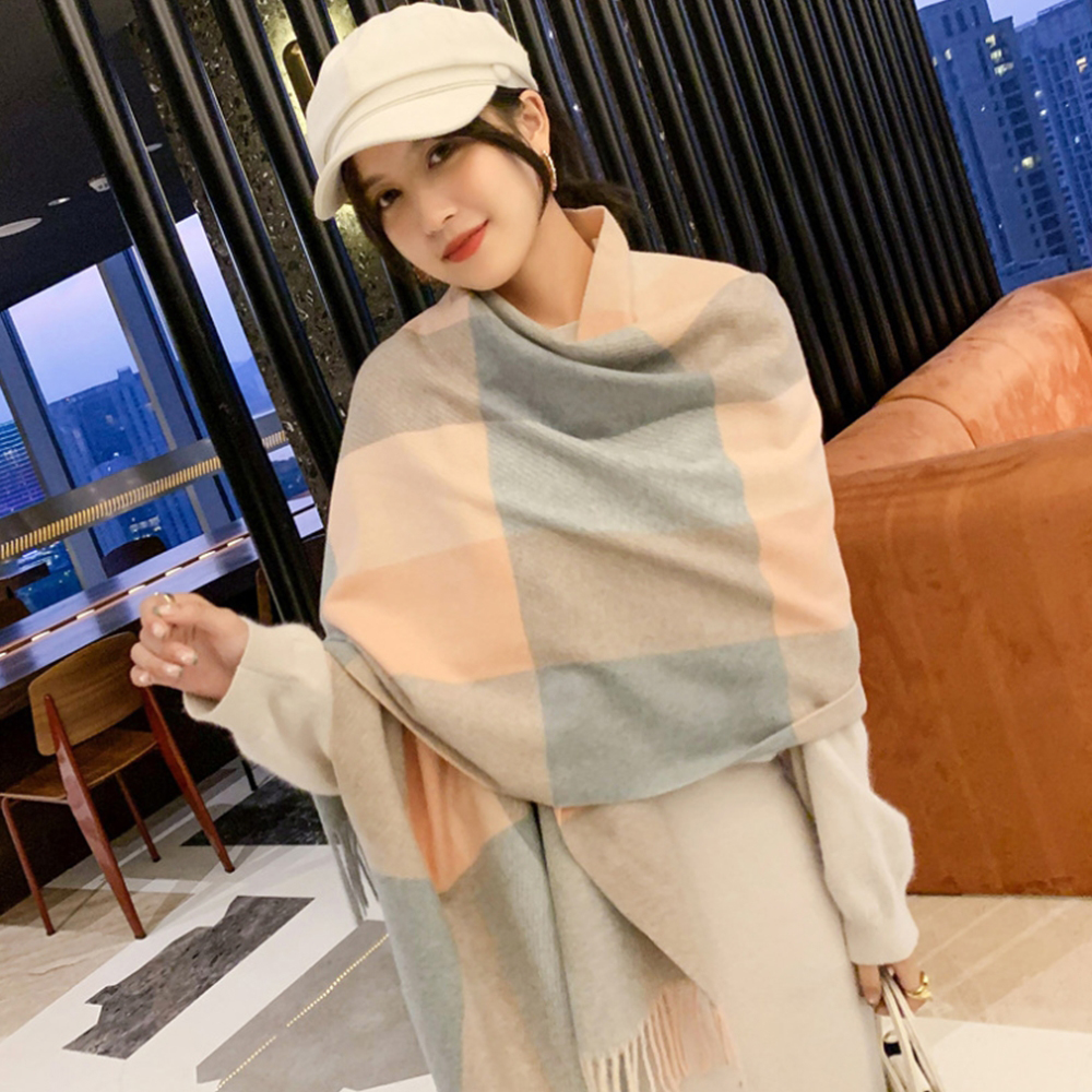 캐시미어 겨울 체크 투톤 롱 머플러 커플 가을 겨울