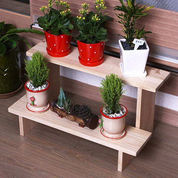 600 2단화분대 원목