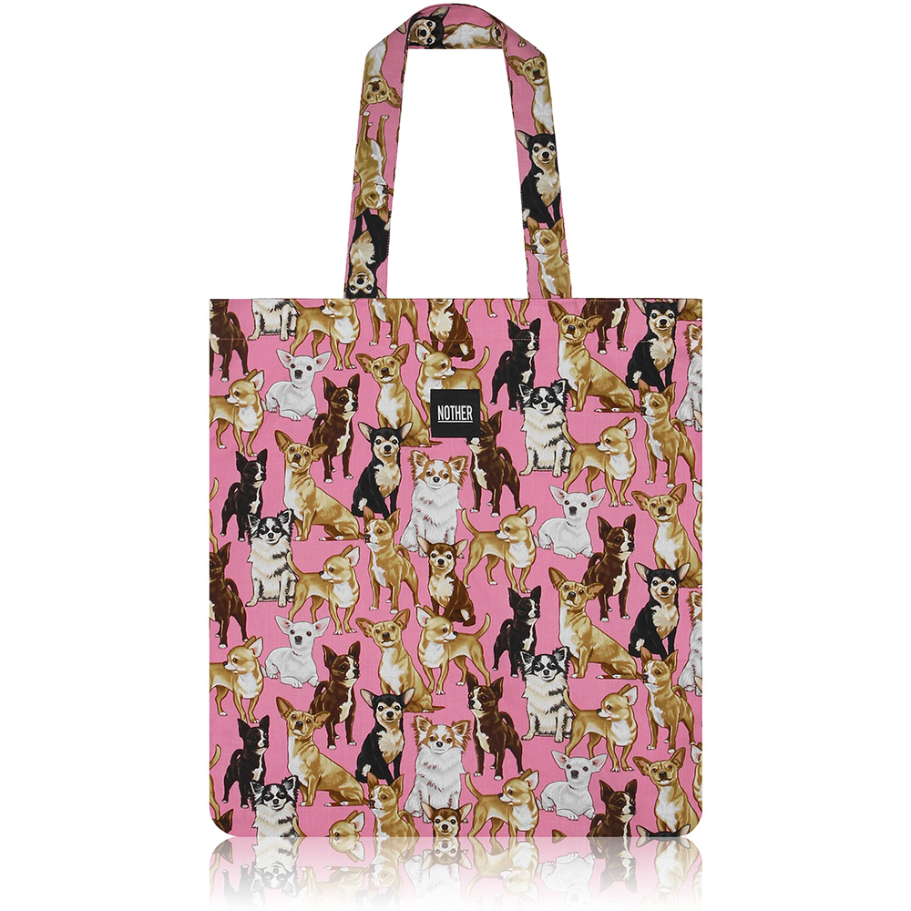 장모 치와와, 단모 치와와를 비롯 블랙탄 치와와 등 다양한 치와와들의 귀여운 모습이 가득한 유니크 플랫 토트백입니다.