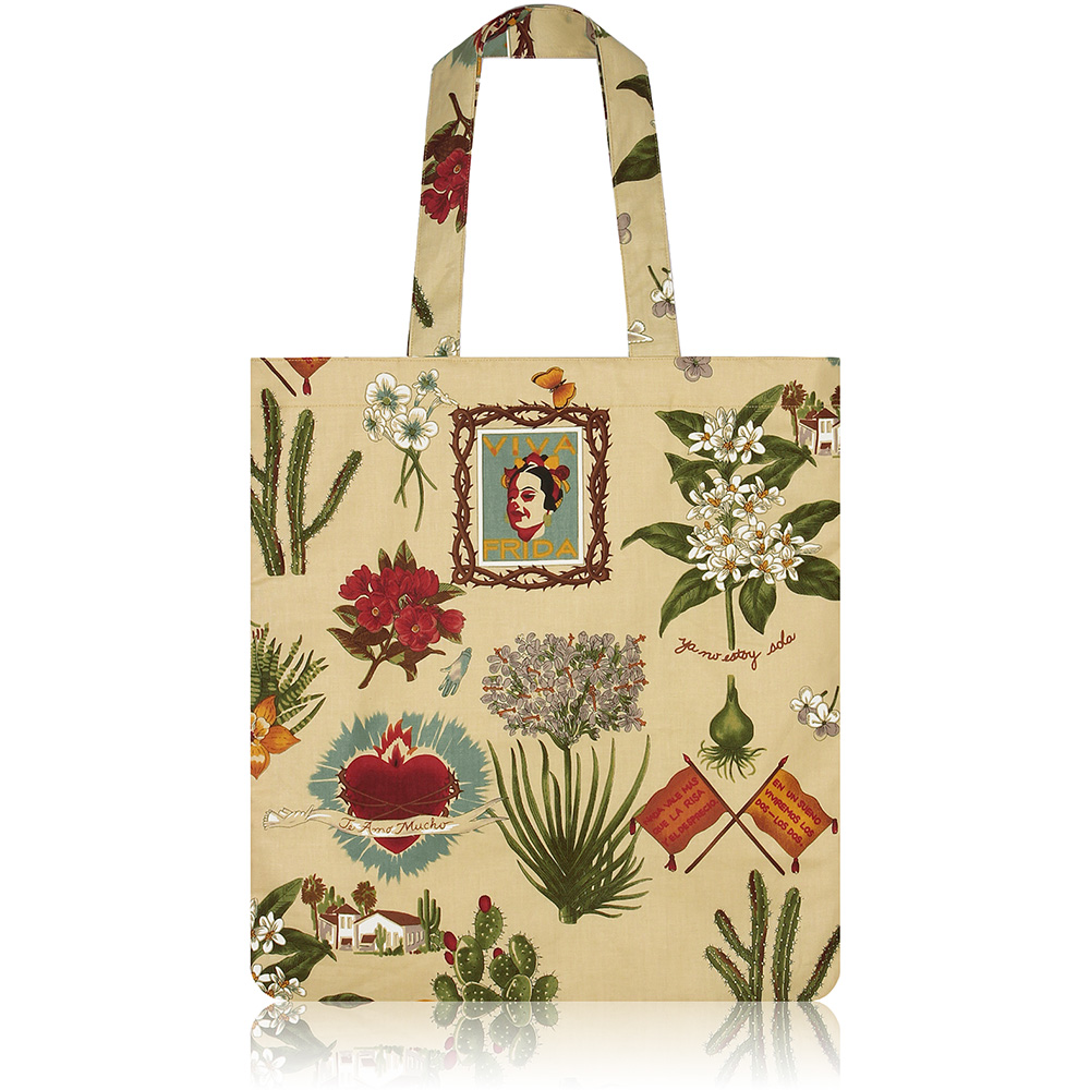 멕시코의 여류 화가 프리다 칼로를 기념하여 디자인된 플랫 토트백과 파우치입니다.