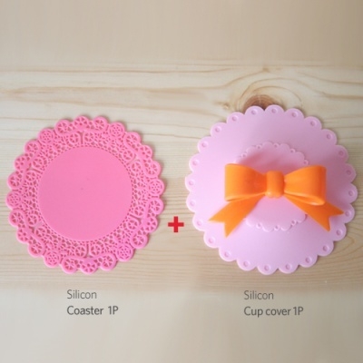 품명 및 모델명 리본레이스 컵커버 받침2P세트-핑크