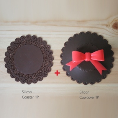 품명 및 모델명 리본레이스 컵커버 받침2P세트-브라운