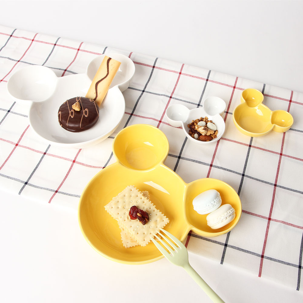 베이지브라운 유리 접시 캐릭터 주방 인테리어 소품