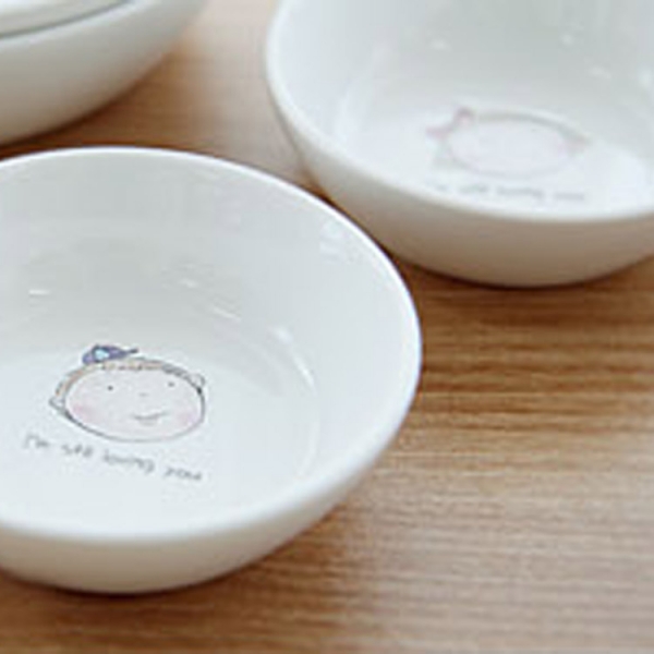 베이지브라운 유리 접시 캐릭터 주방 인테리어 소품