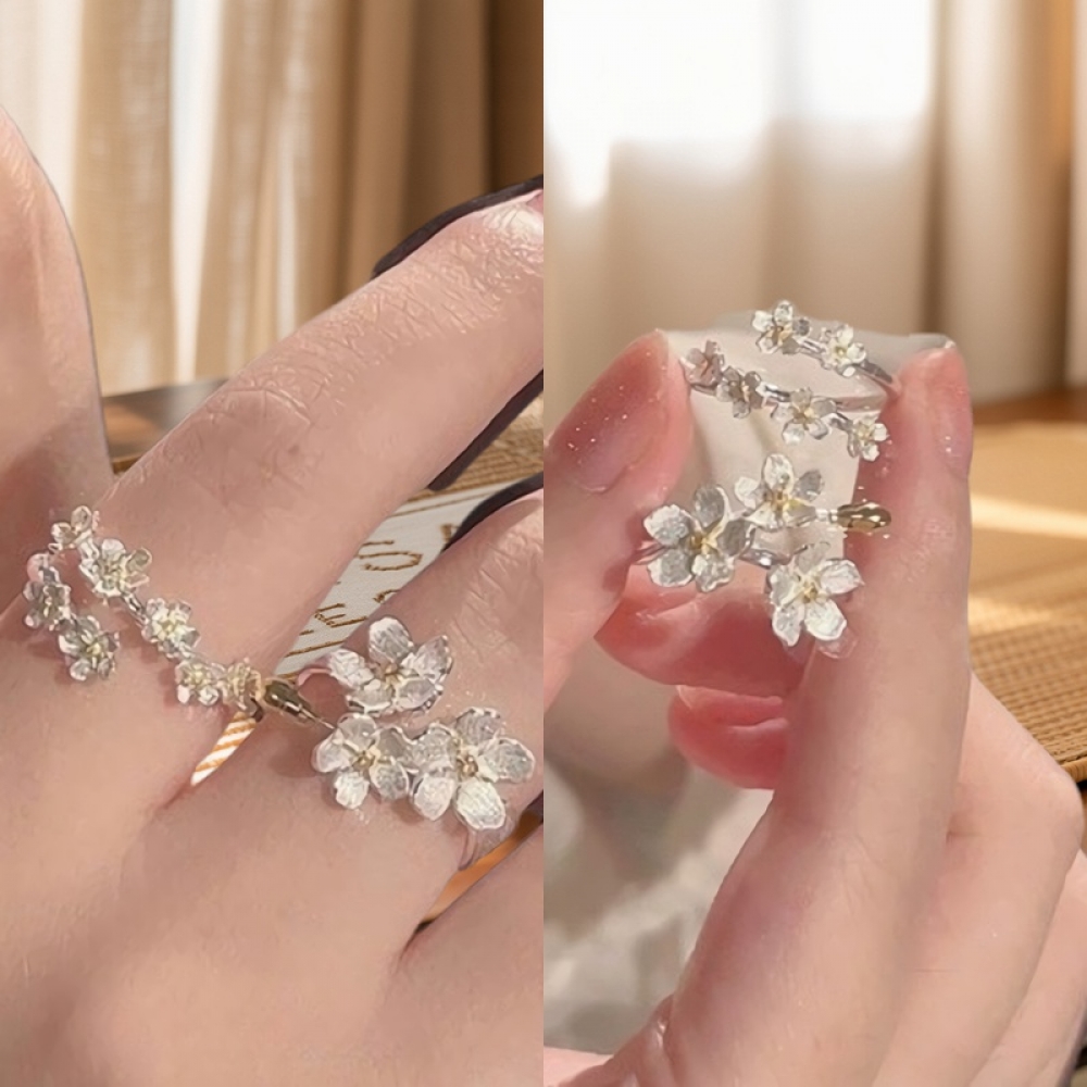 여성 플라워 동백꽃 포인트 오픈 링 반지
