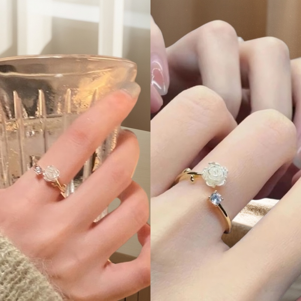 여성 플라워 장미 동백꽃 오픈 링 반지