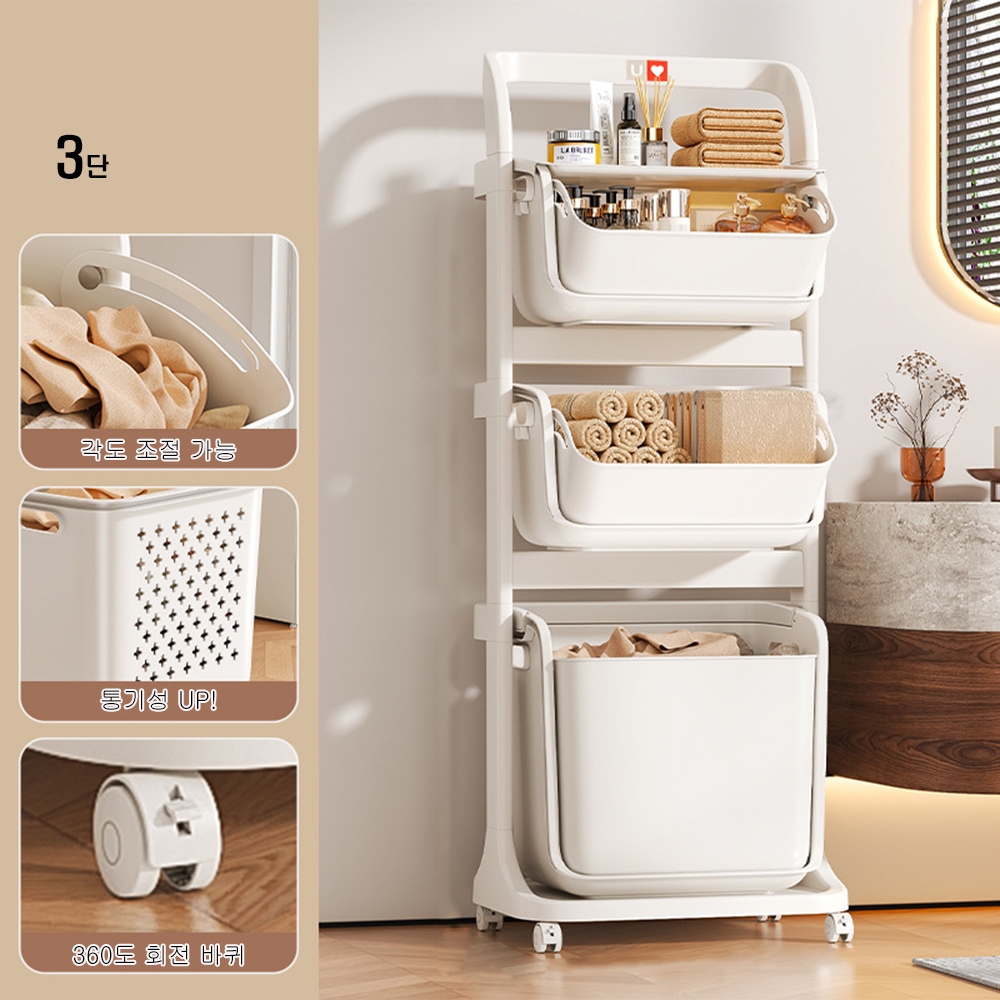 홈 이동식 트롤리 멀티 빨래바구니 3단 B-2
