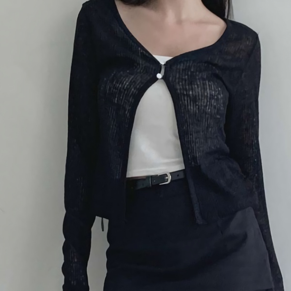 (대여) 스위트 아이보리 블랙 단추 여자 가디건 교복
