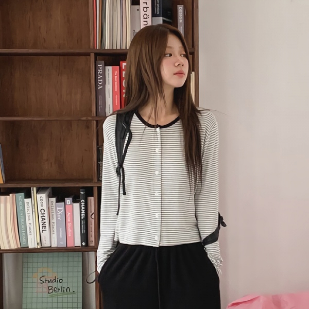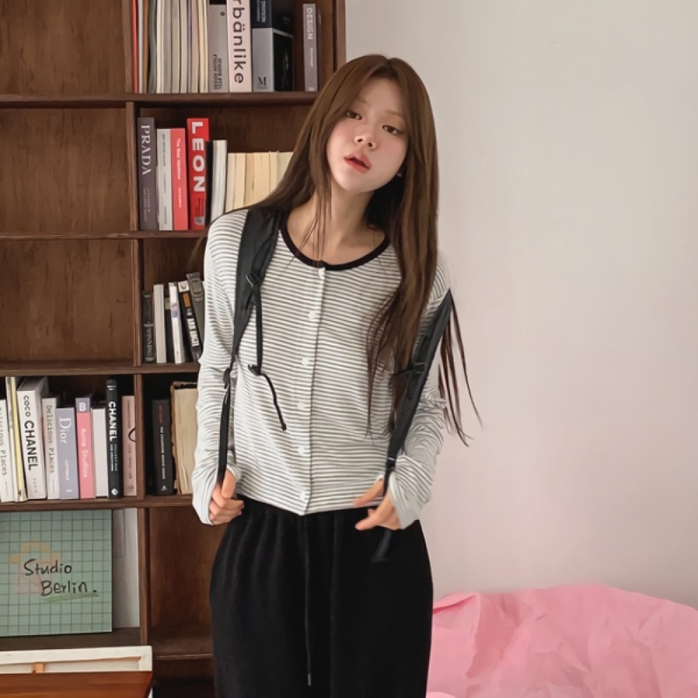 (대여) 스위트 아이보리 블랙 단추 여자 가디건 교복
