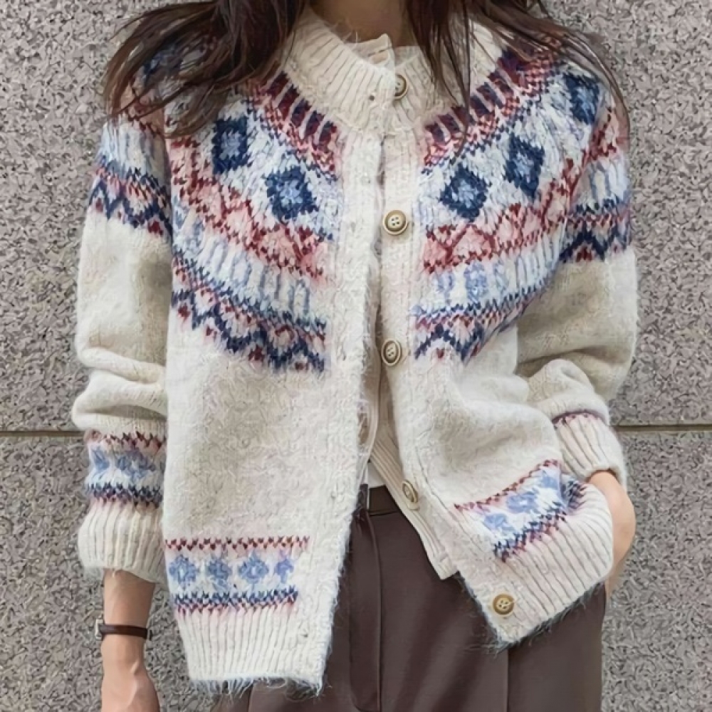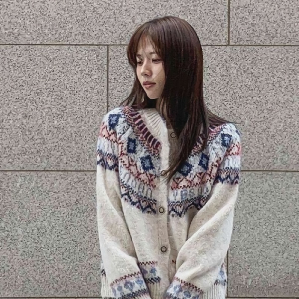 여성 노르딕 루즈핏 쟈가드 울 니트 가디건