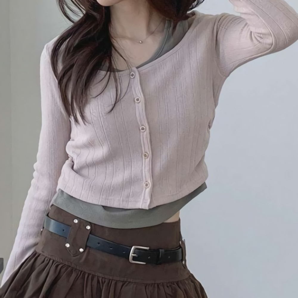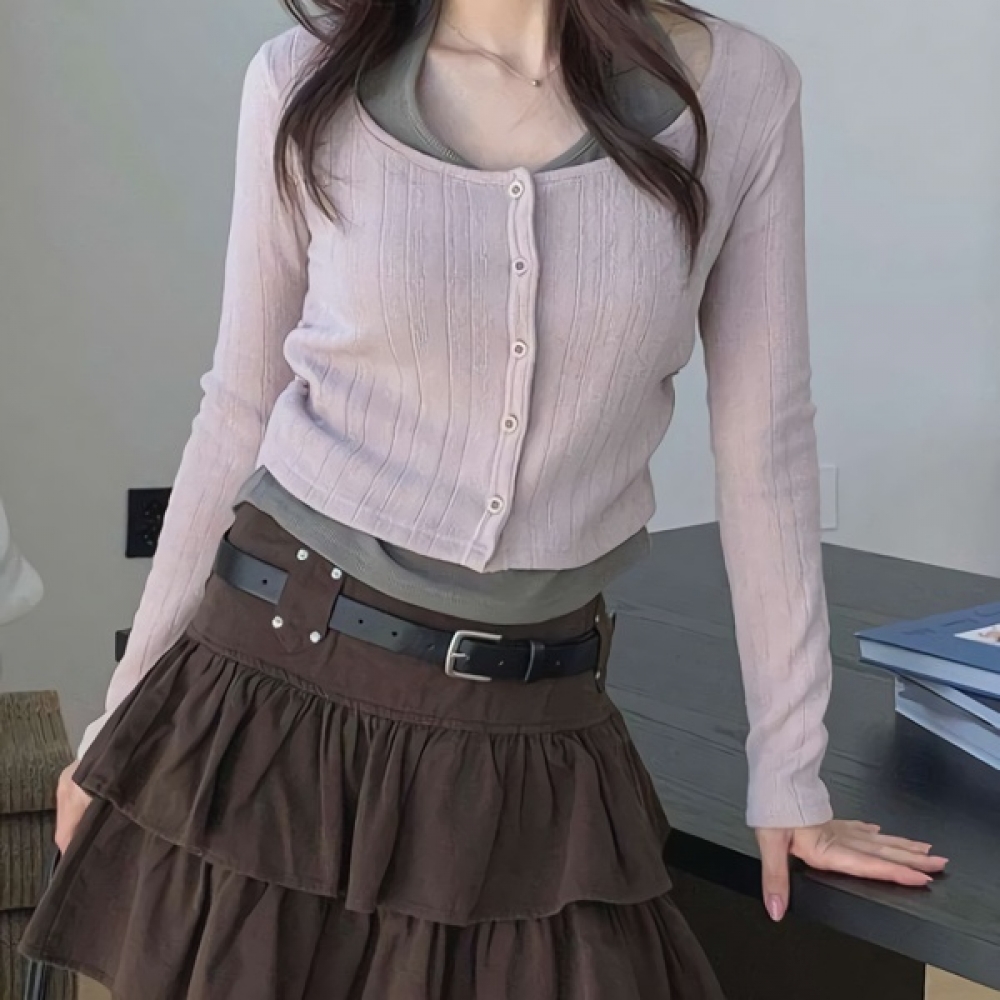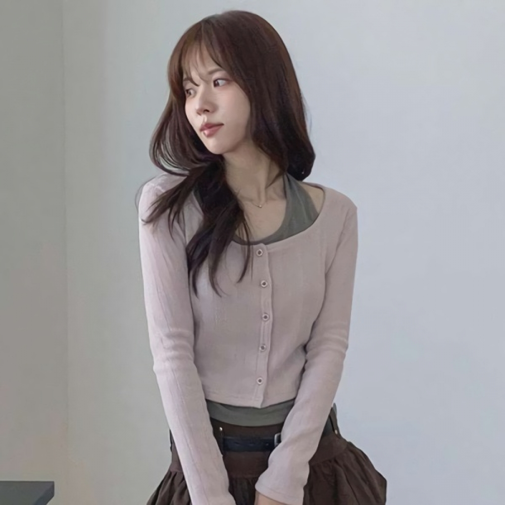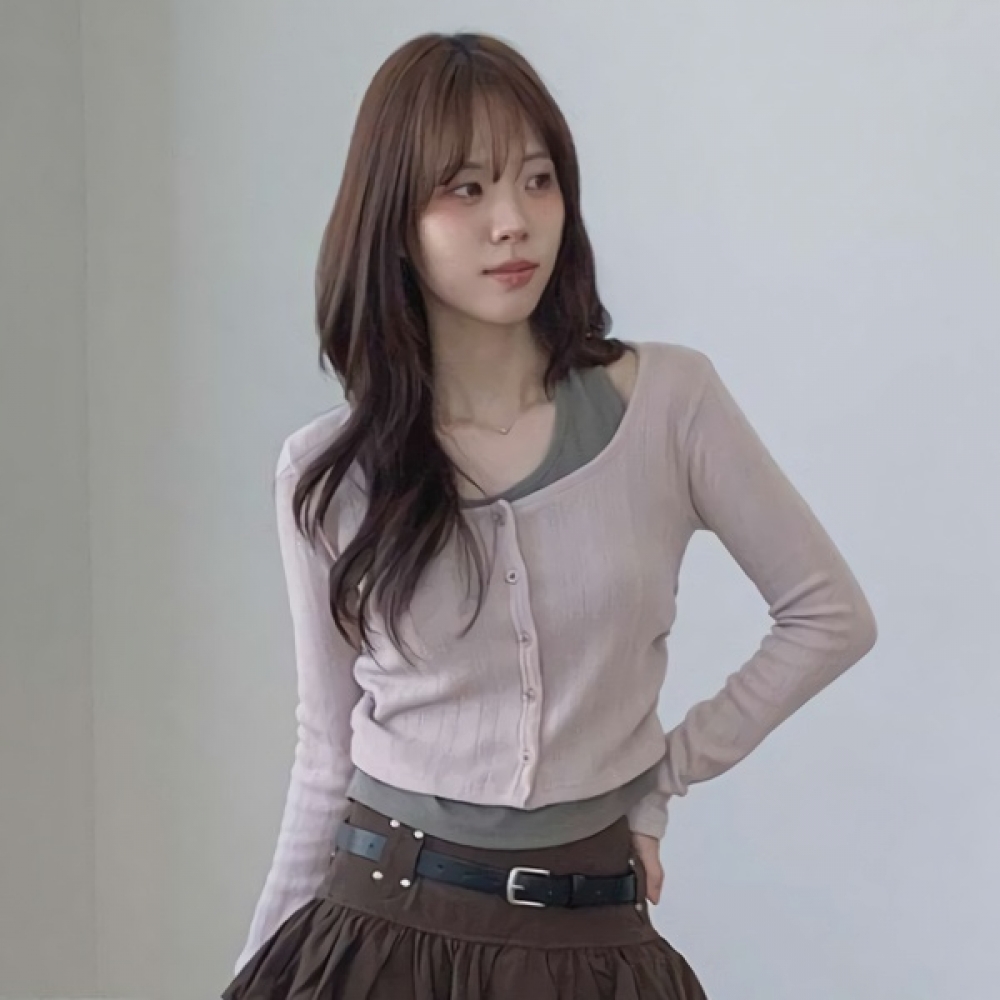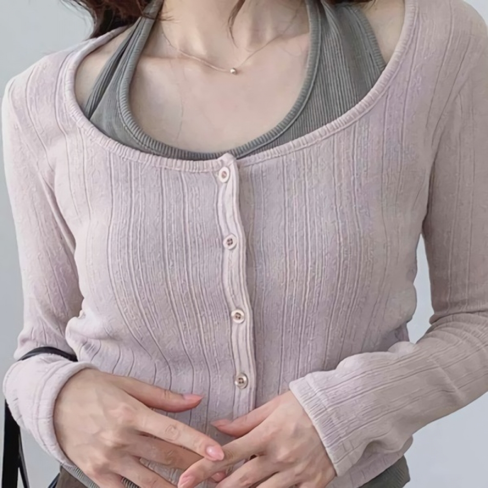 여성 홀터넥 나시 일체형 슬림 골지 가디건