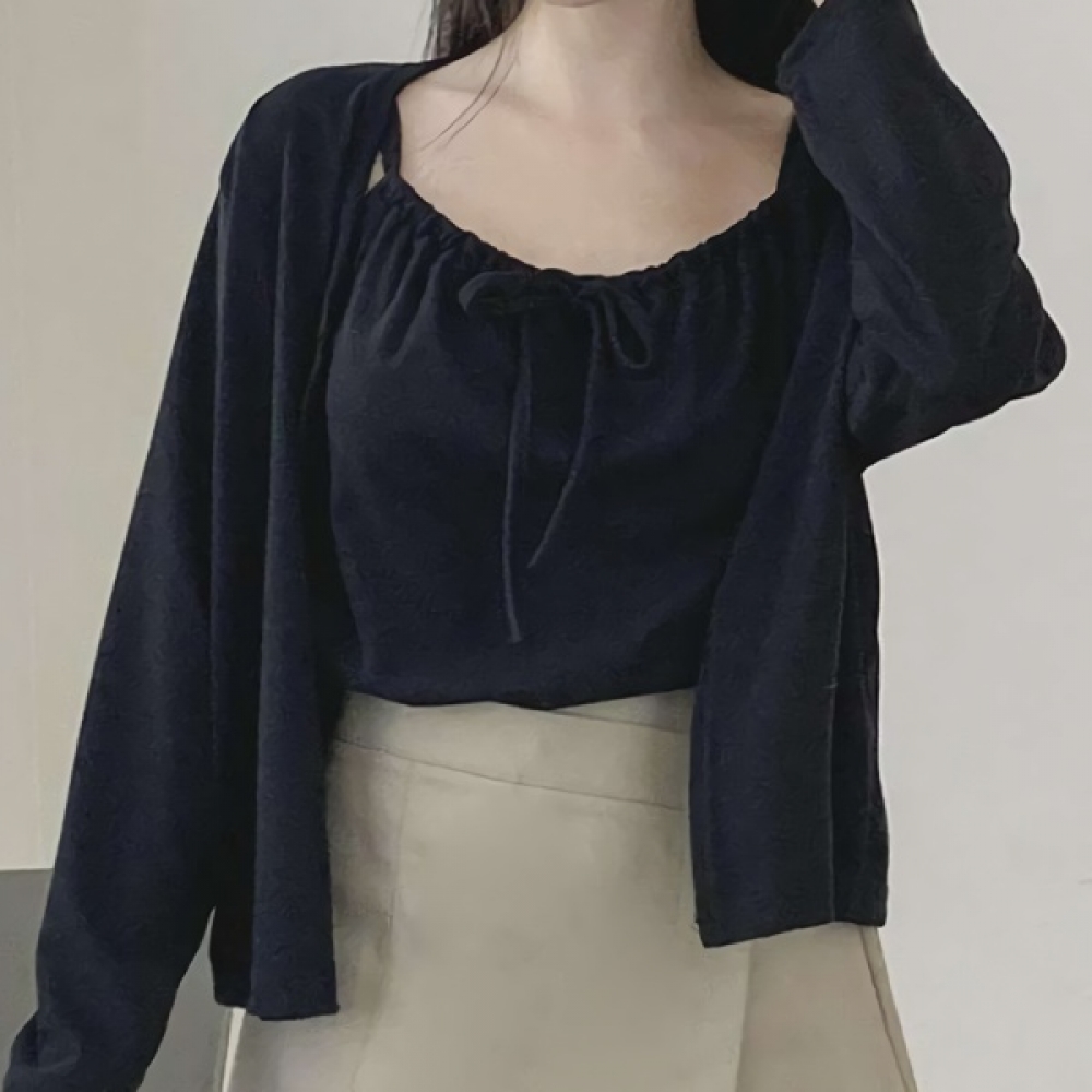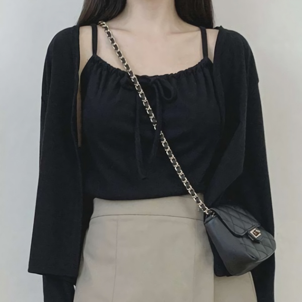 여성 셔링 스트링 크롭 나시 가디건 세트