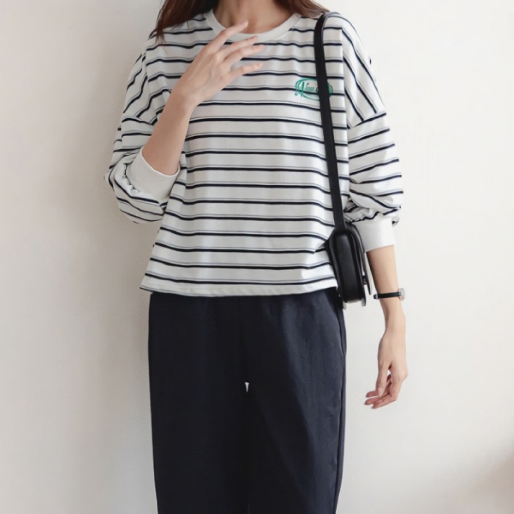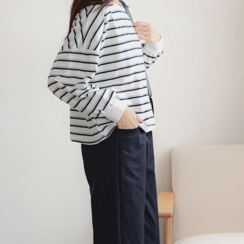 뉴욕 스트라이프 라운드 소매 시보리 티셔츠