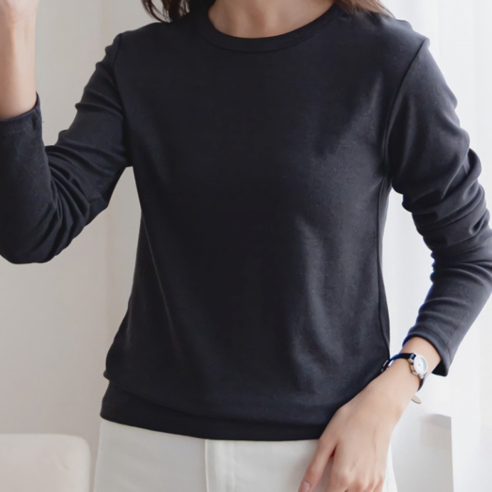 여성 미니 마들렌 라운드 기본 긴팔 티셔츠