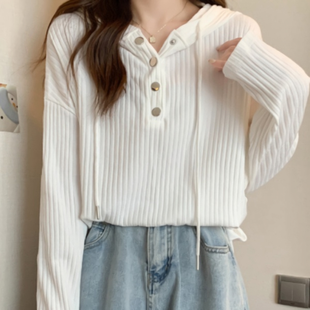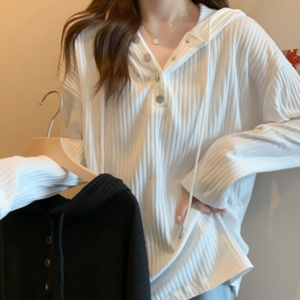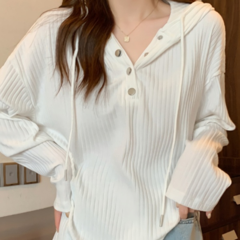 여성 겨울 골지 버튼 루즈핏 후드 티셔츠