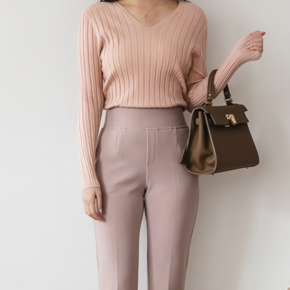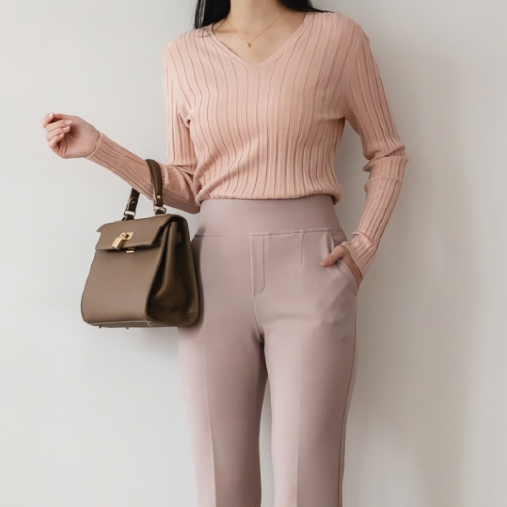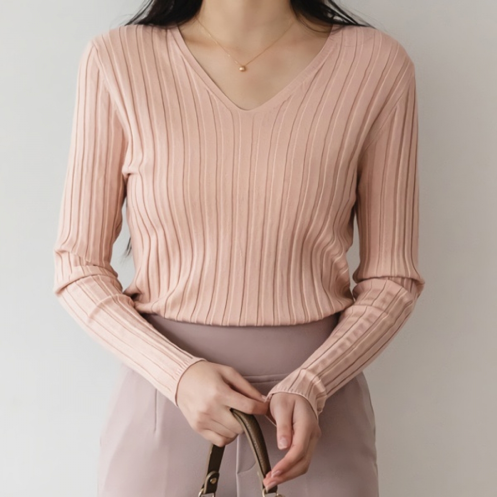 여성 가을 겨울 데일리 골지 브이넥 니트