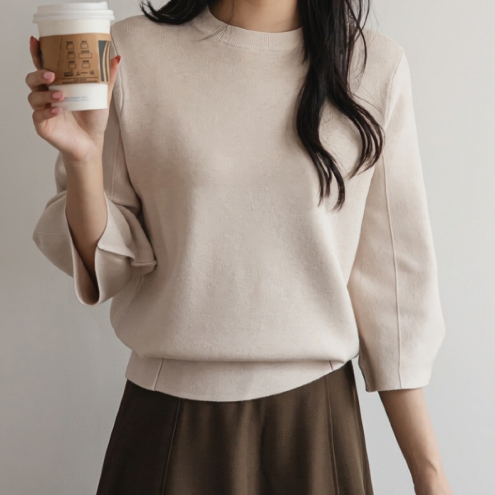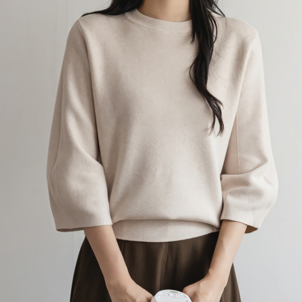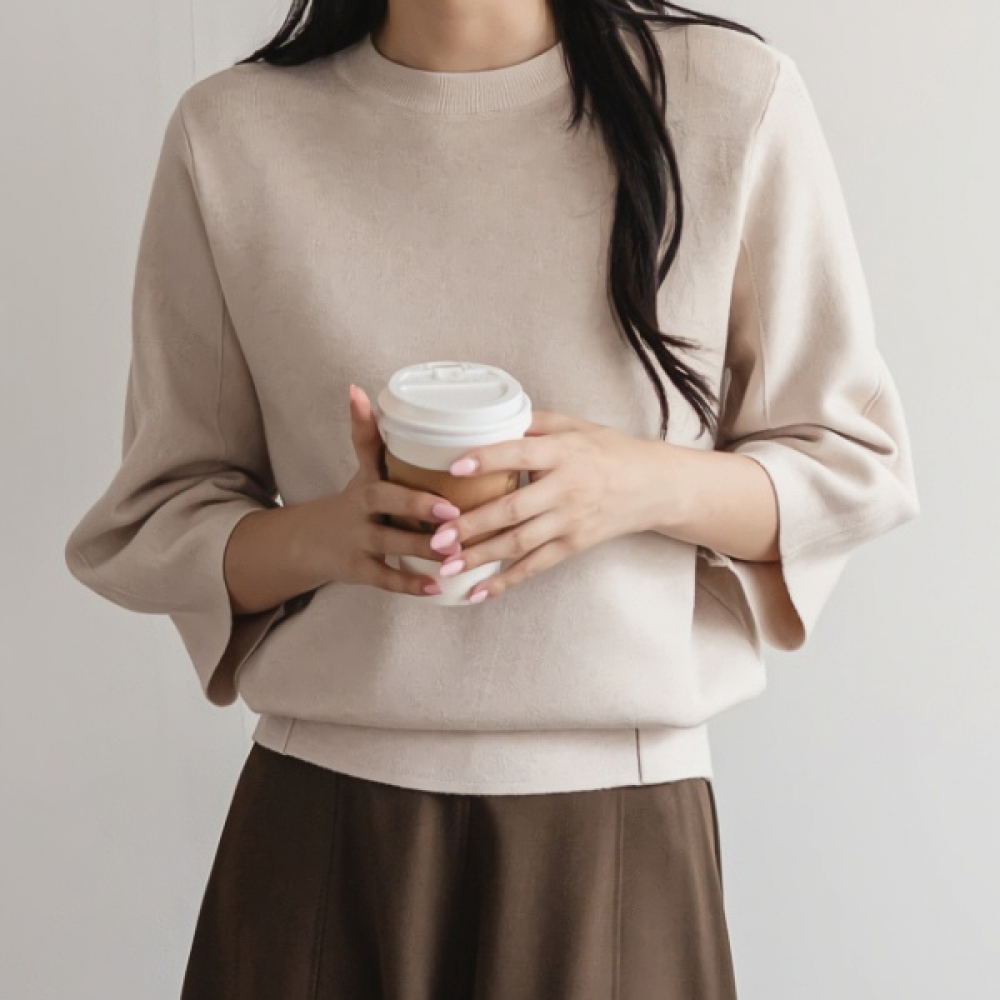 여성 겨울 핀턱 퍼프 소매 로맨틱 니트