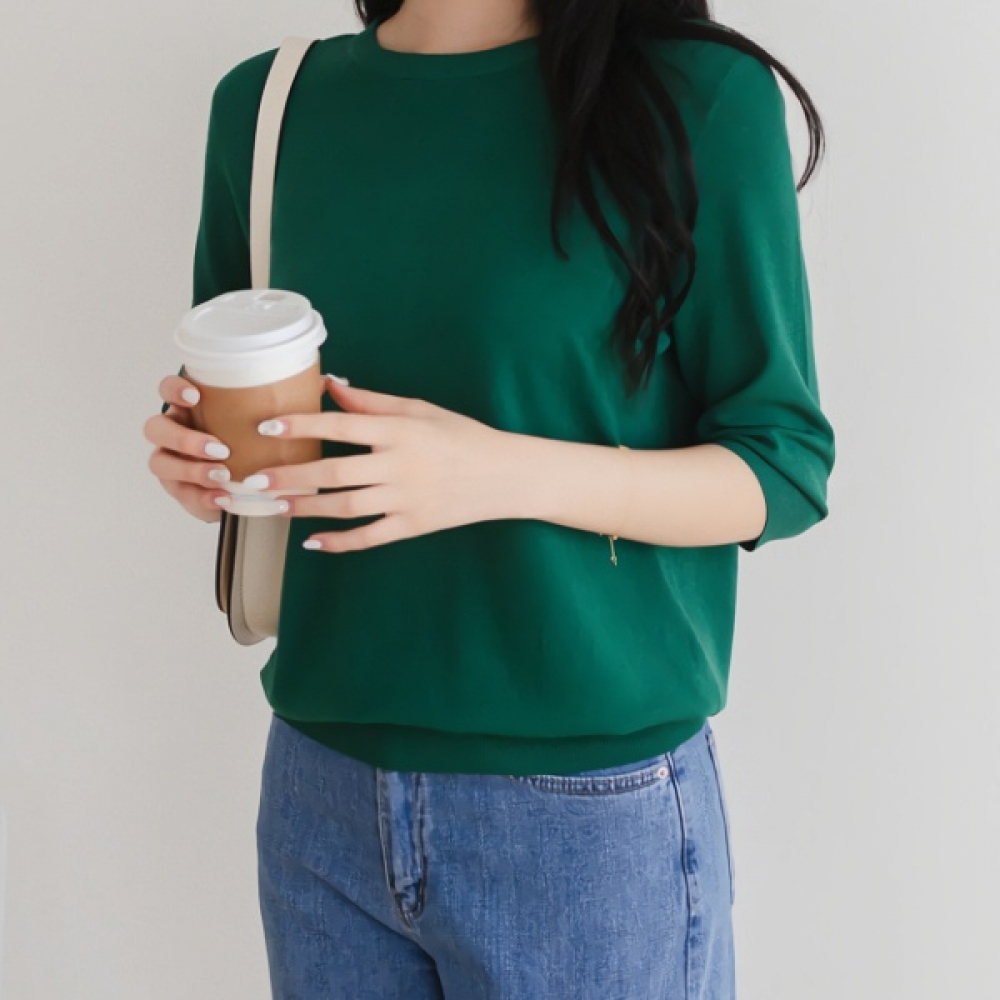 여성 겨울 모던 7부 라운드 노멀핏 니트