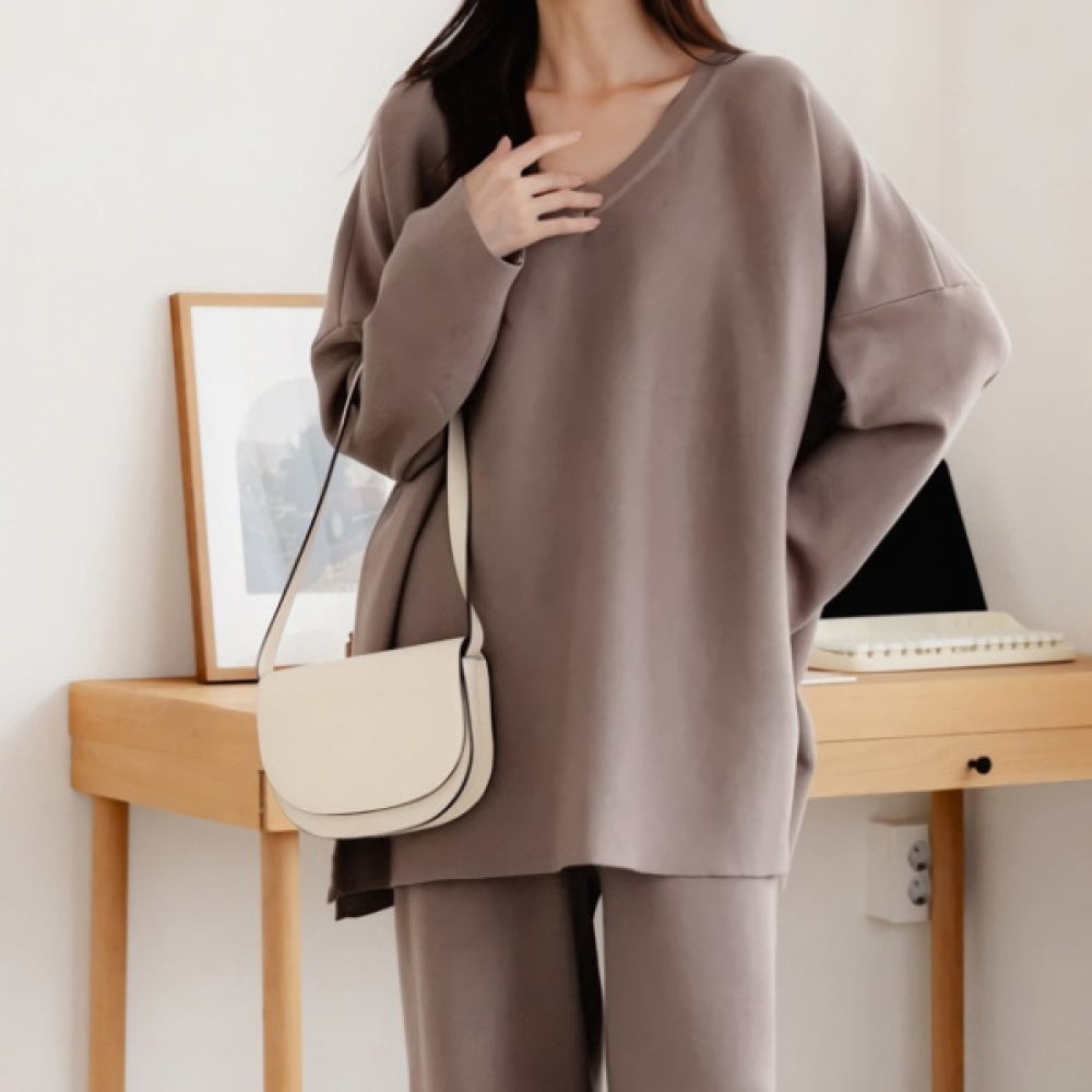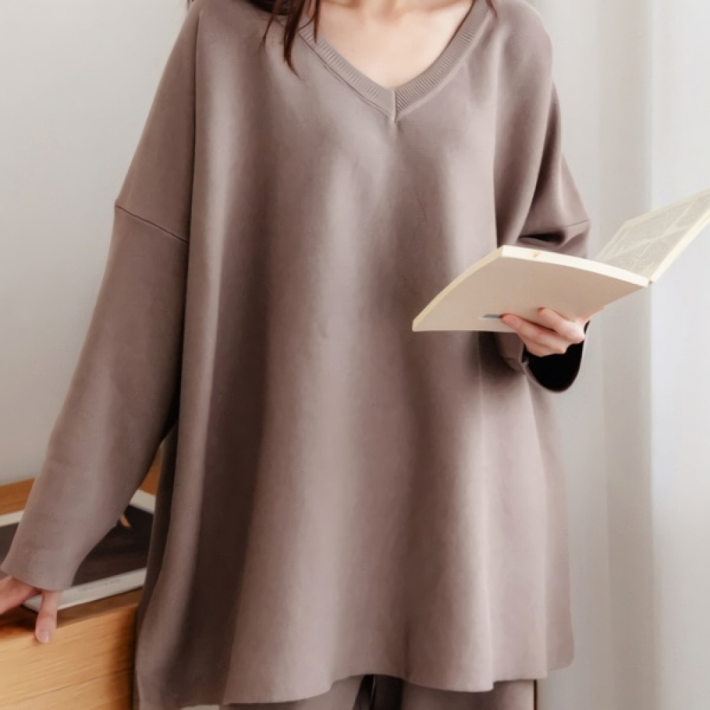 여성 겨울 브이넥 니트 밴딩 팬츠 세트