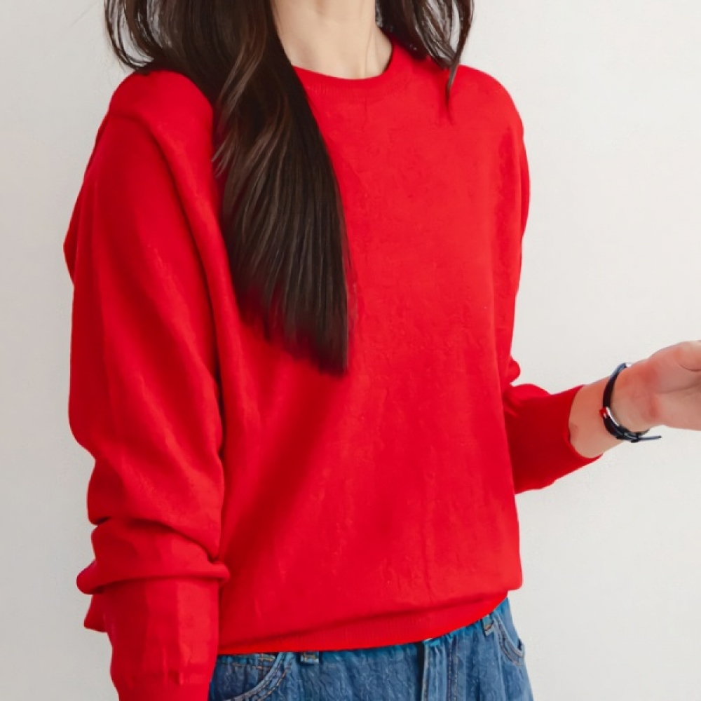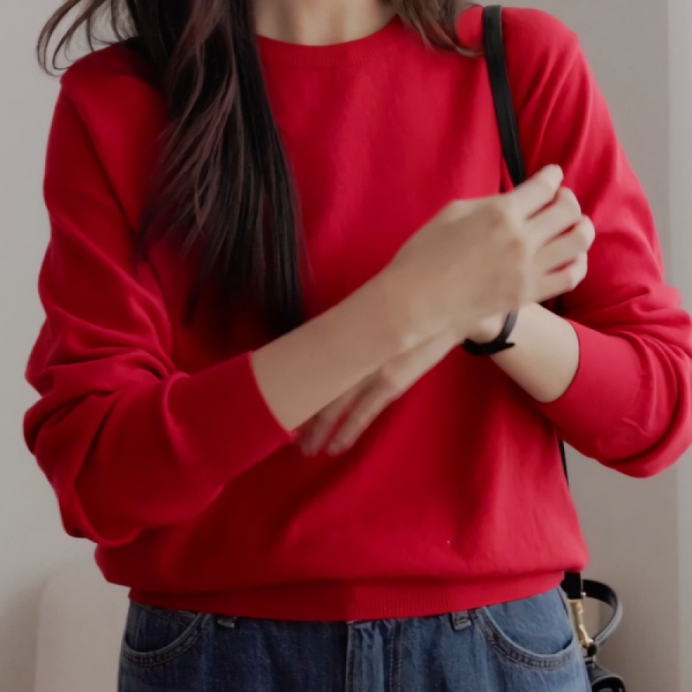 여성 코튼 로아 간절기 베이직 라운드 니트