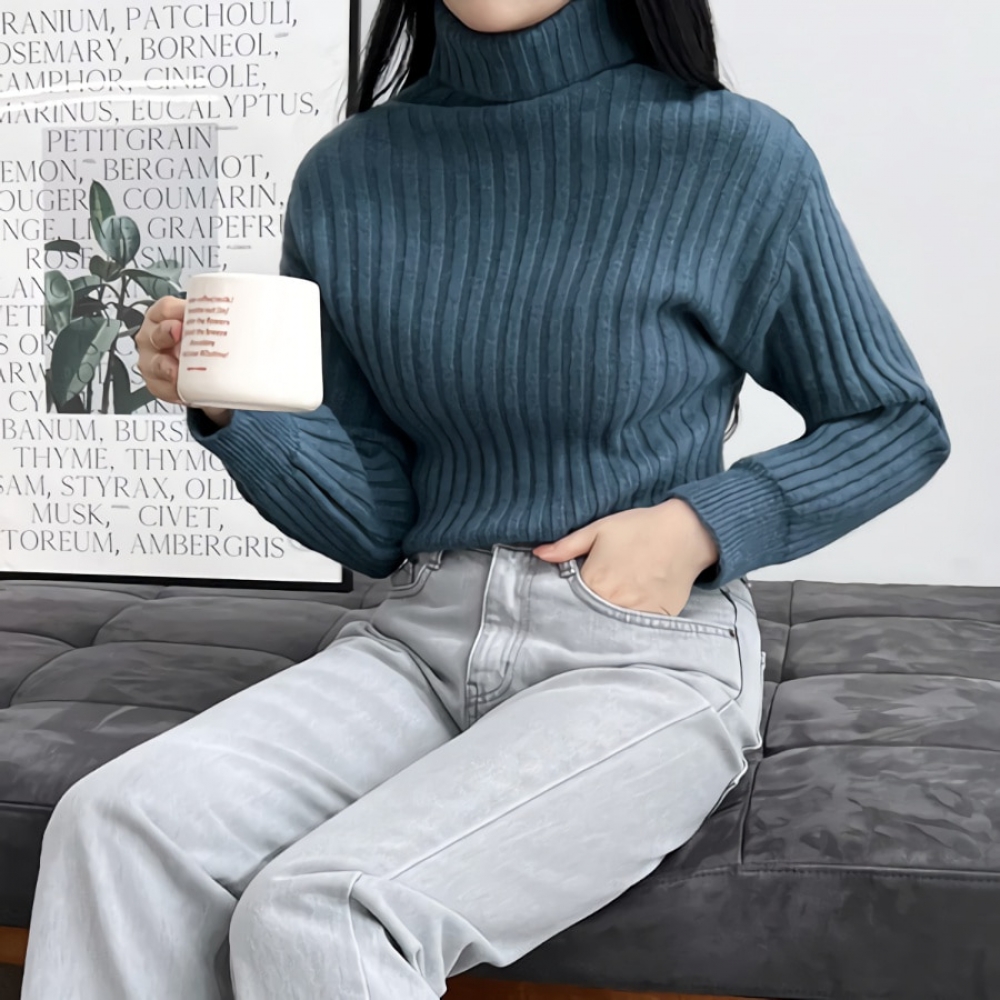 여자 겨울 터틀넥 목폴라 울니트 스웨터