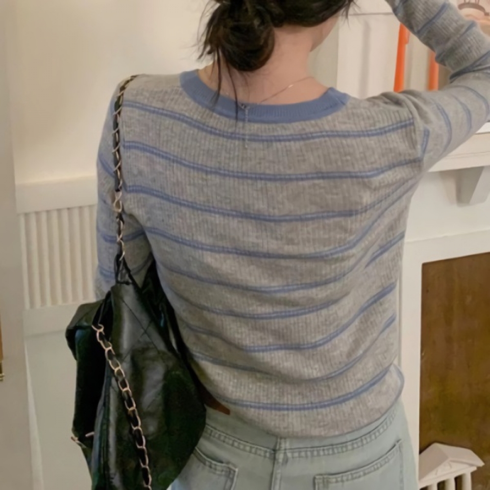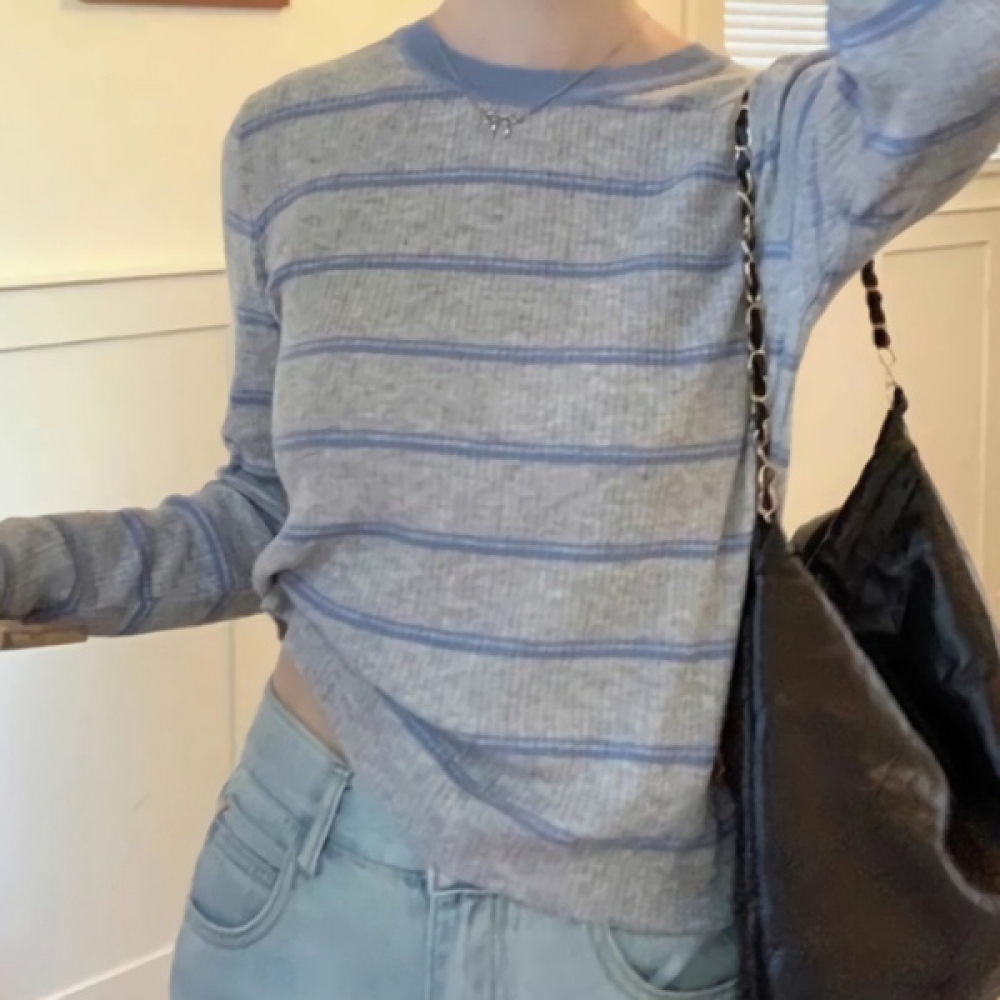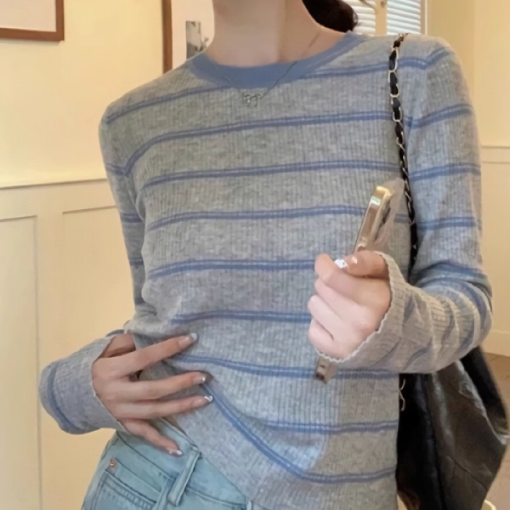 여성 겨울 소프트 스트라이프 니트 티셔츠