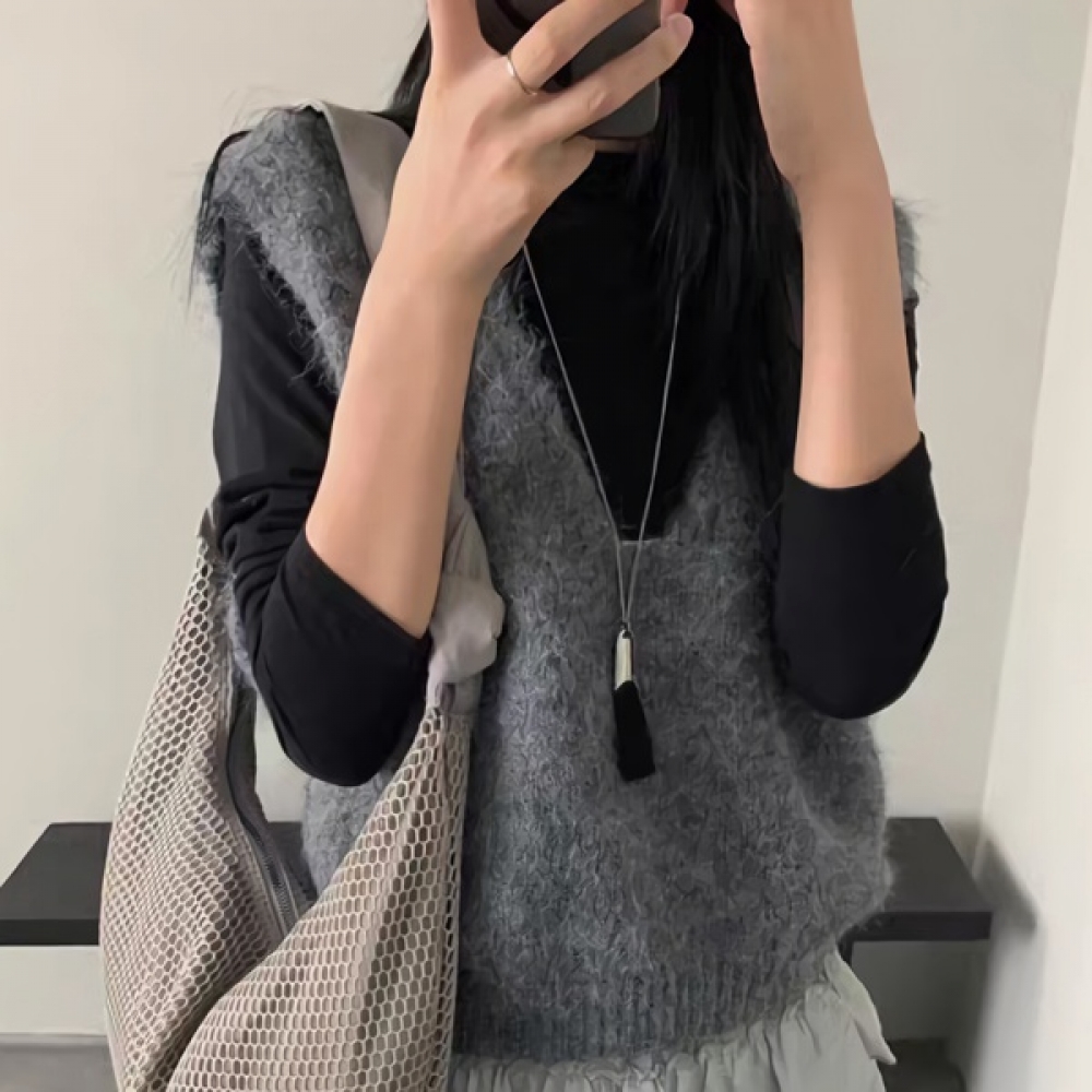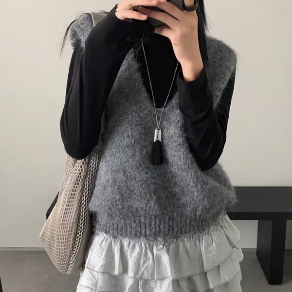 여성 가을 겨울 베이직 브이넥 조끼