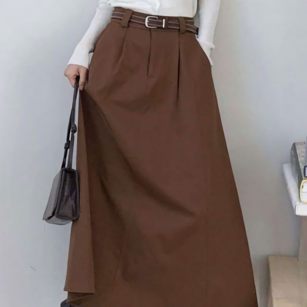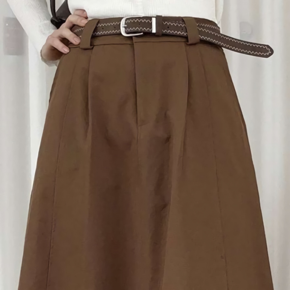 여성 투핀턱 A라인 롱 스커트(벨트set)