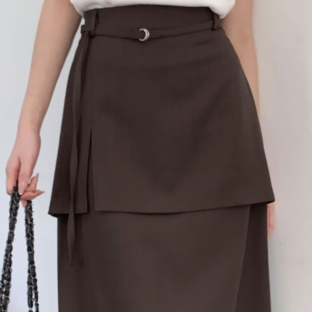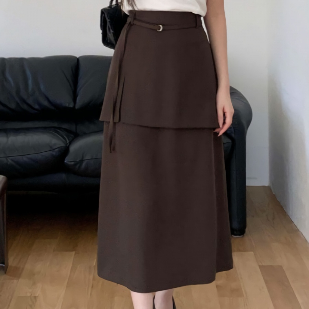 여성 A라인 이중 레이어드 벨트 롱 스커트
