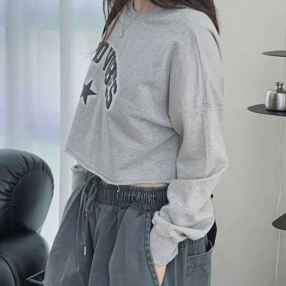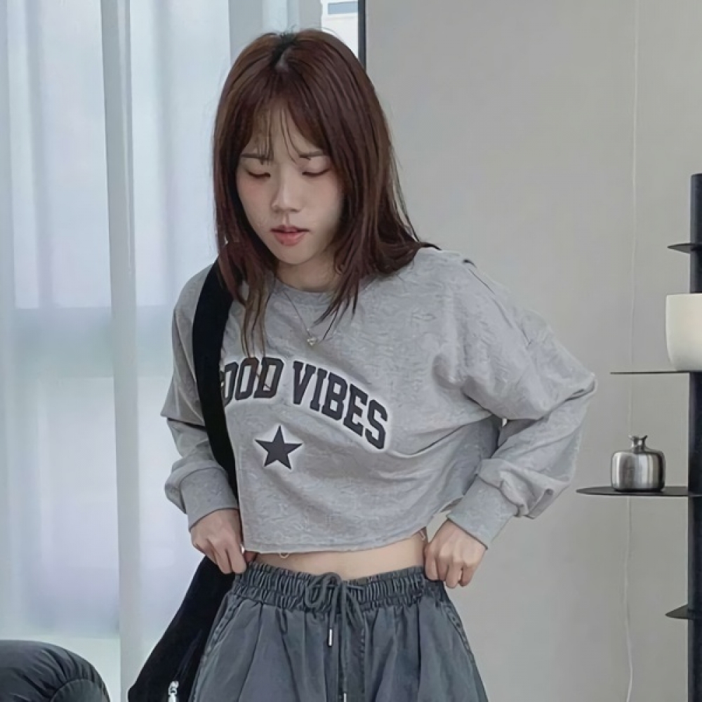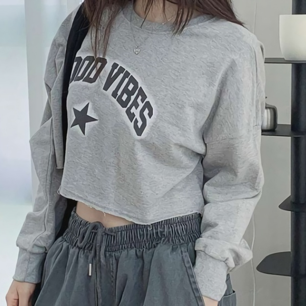 여성 빈티지 코어 크롭 후드 맨투맨 티셔츠