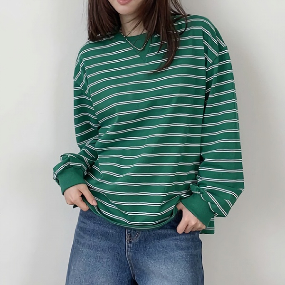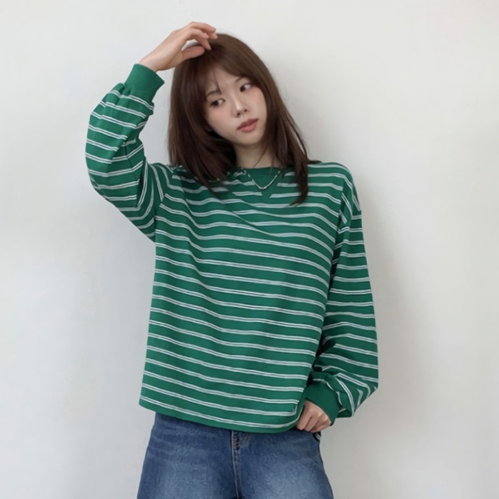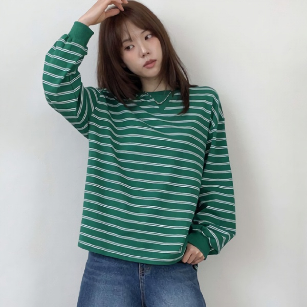 여성 루즈핏 긴팔 스트라이프 맨투맨