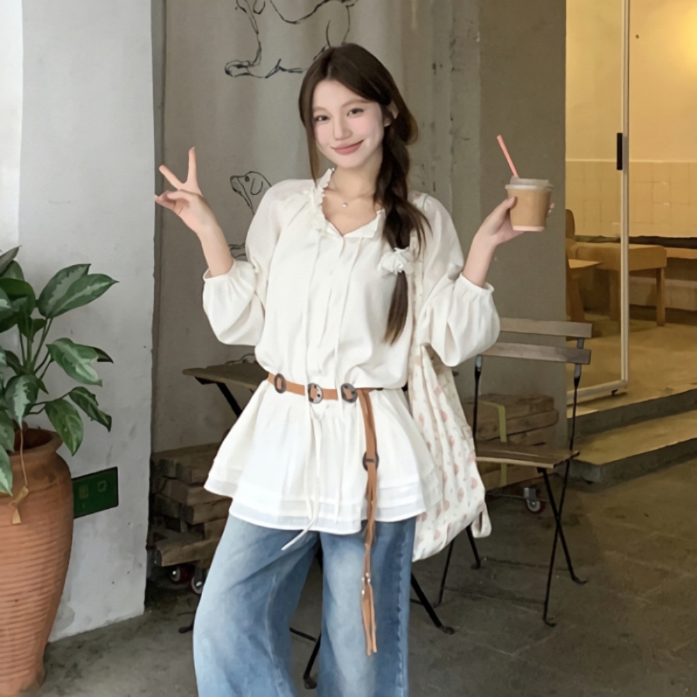 여성 가을 겨울 로로 스트랩 프릴 블라우스
