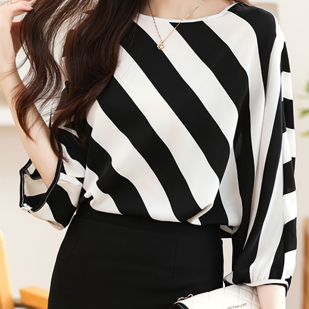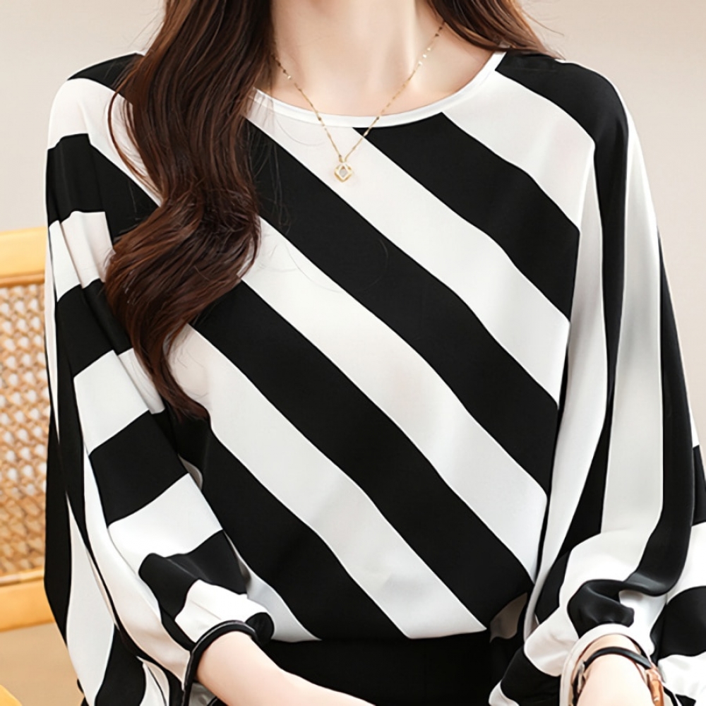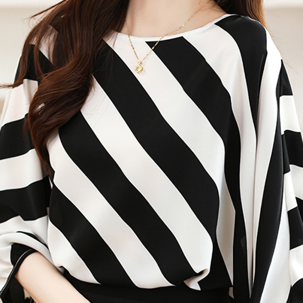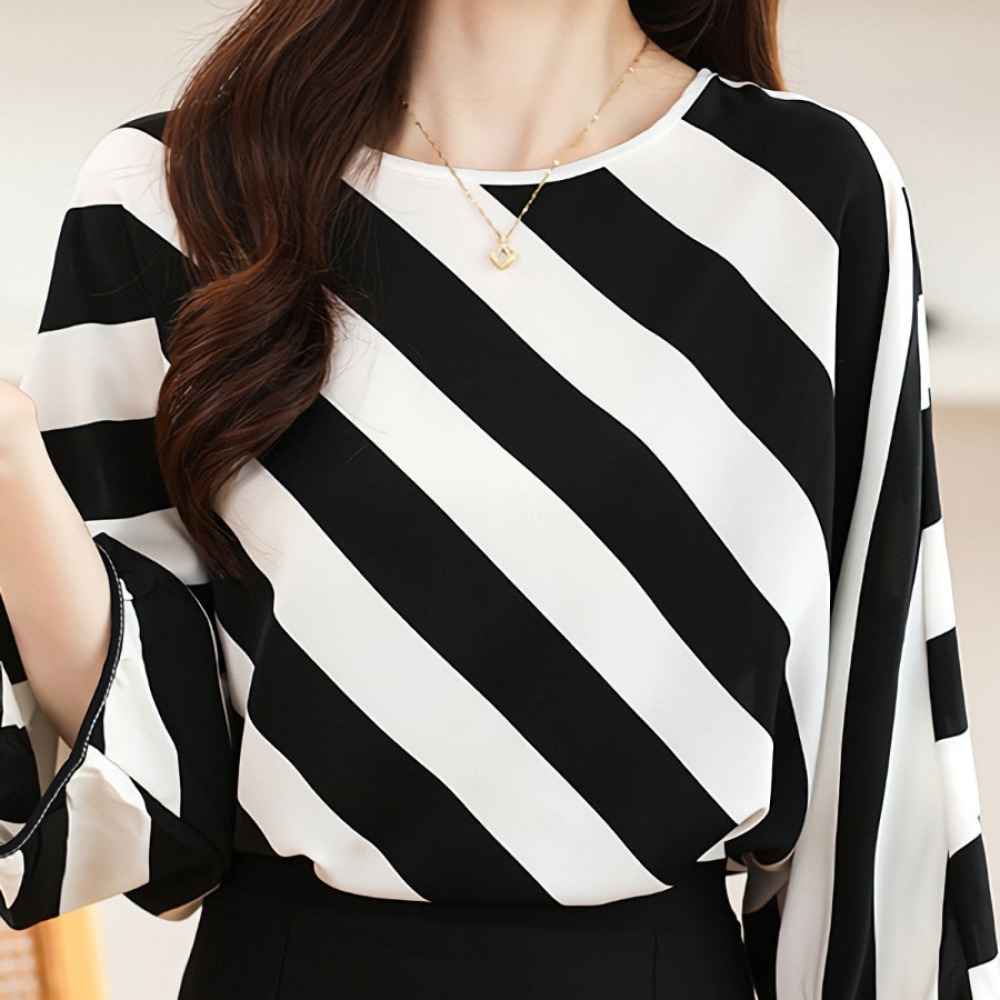 여성 루즈핏 스트라이프 실크 블라우스