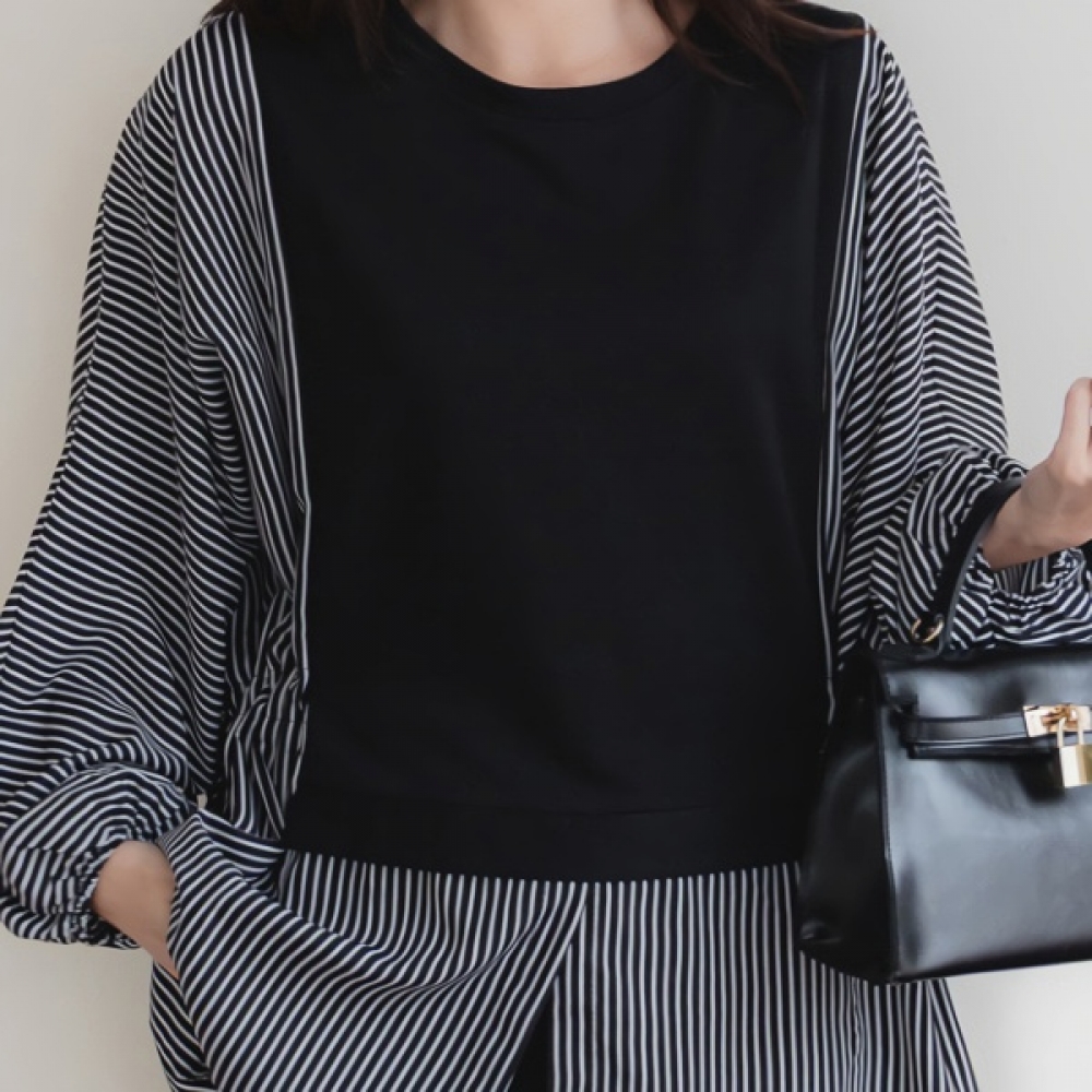 여성 찰리 배색 벌룬 티셔츠 블라우스