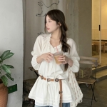 여성 가을 겨울 로로 스트랩 프릴 블라우스