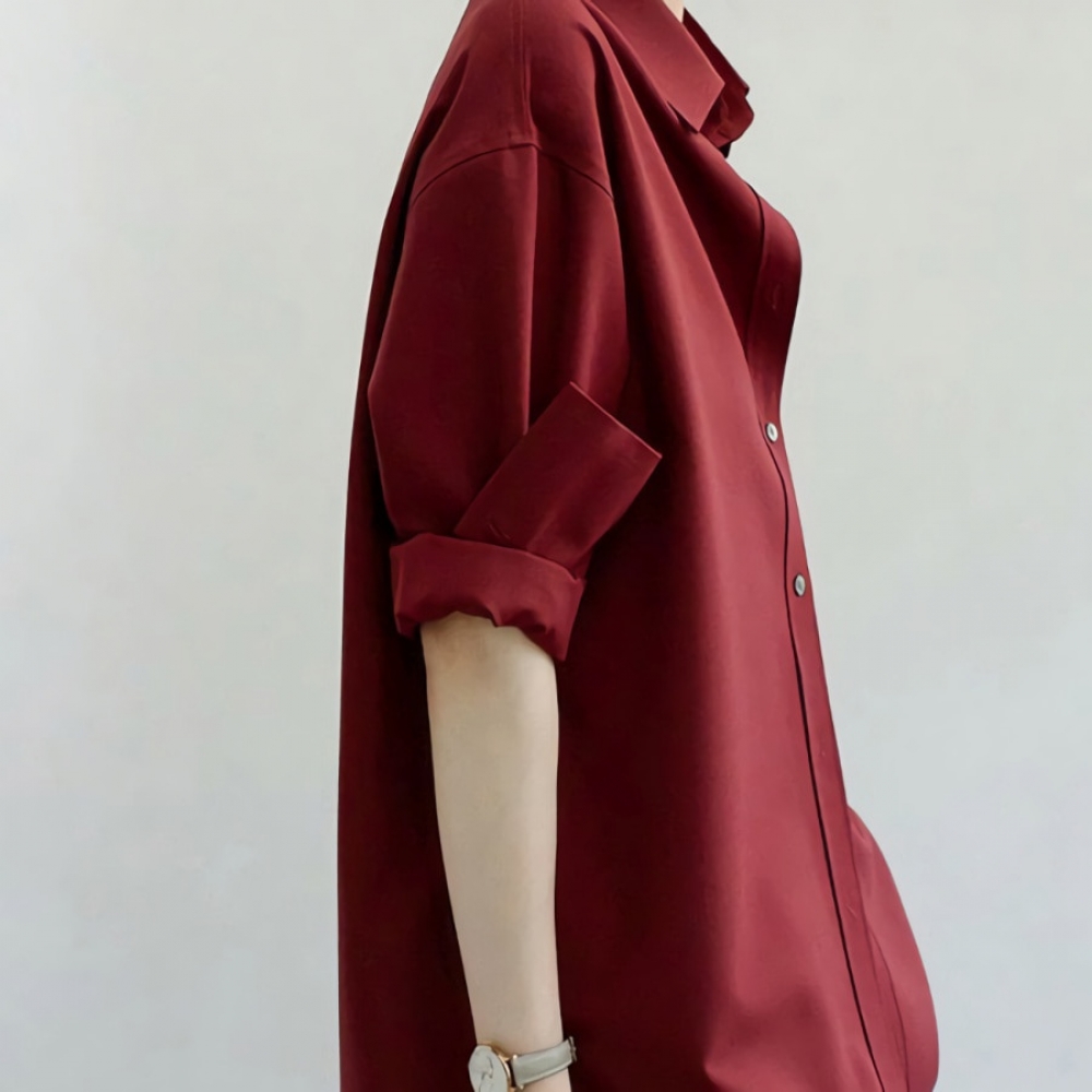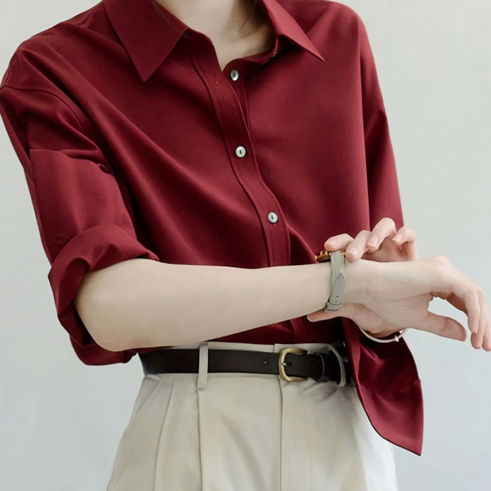 여성 가을 겨울 데일리 새틴 버건디 블라우스