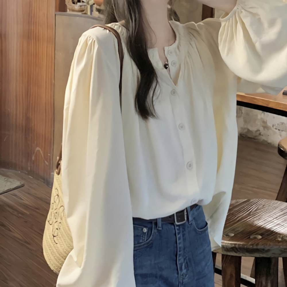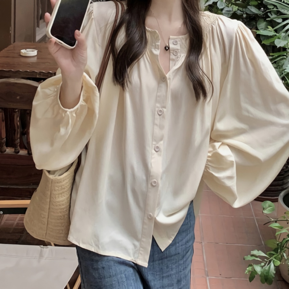 여성 가을 겨울 루즈핏 벌룬소매 블라우스