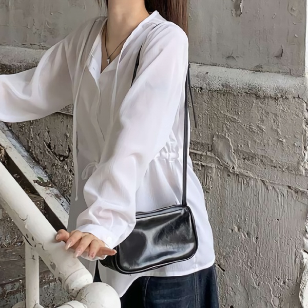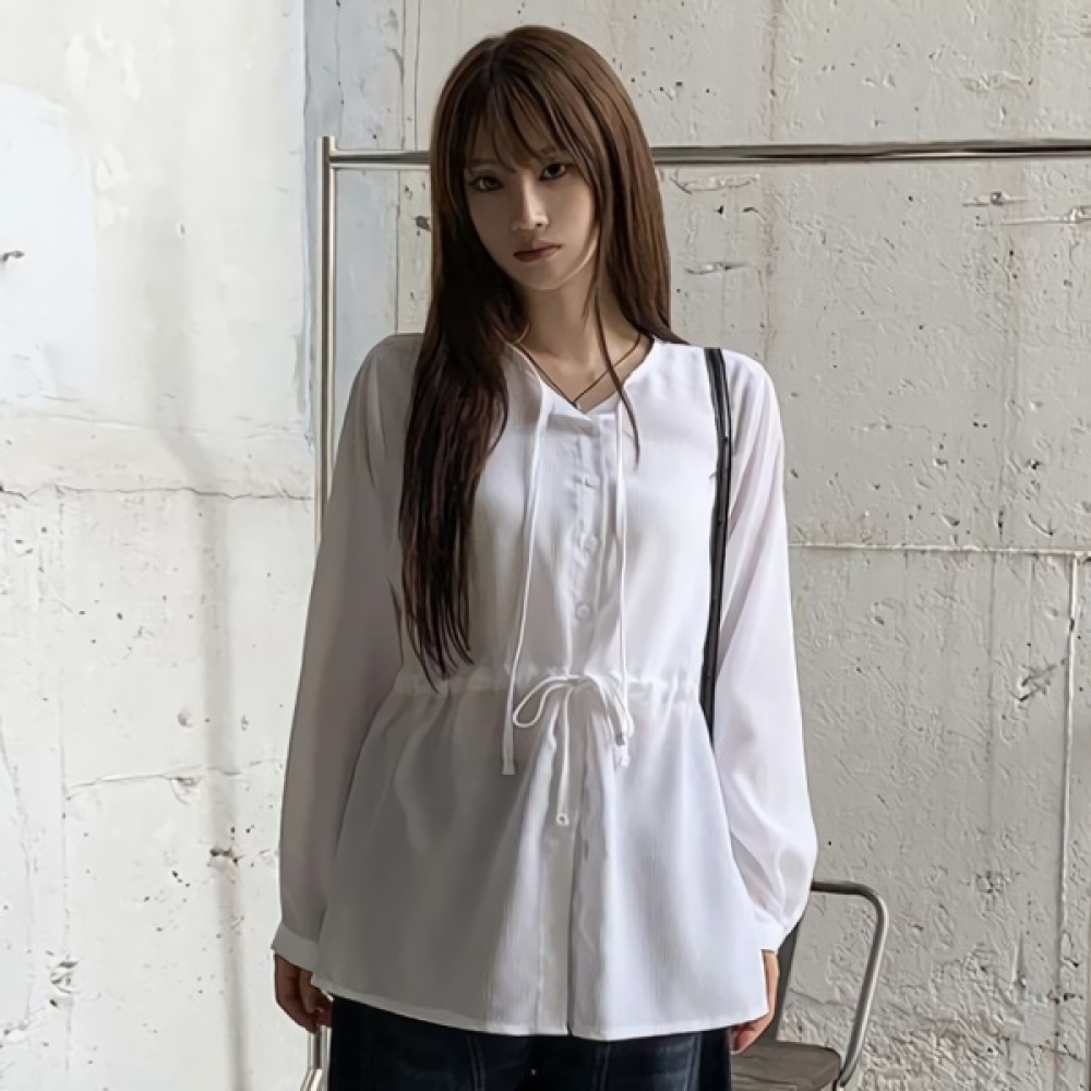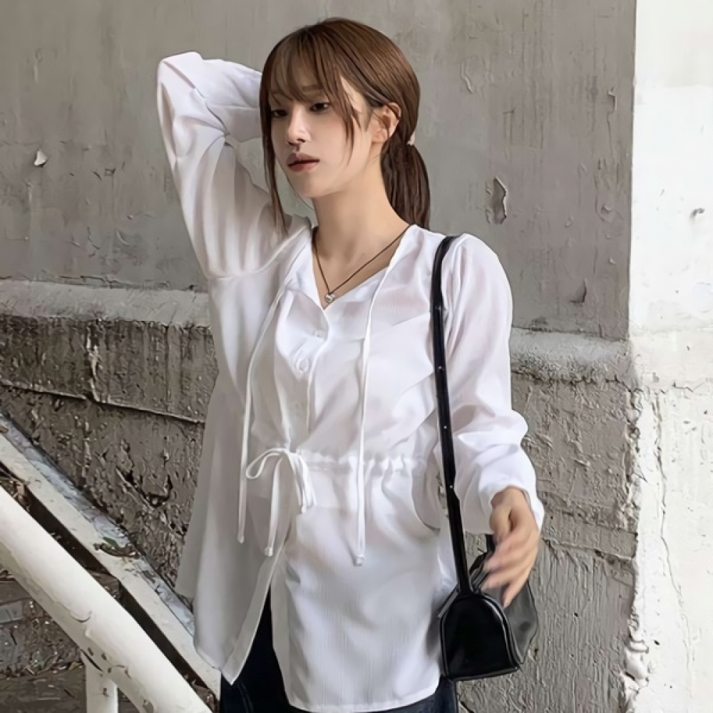 여성 겨울 오버핏 스트링 셔츠 블라우스