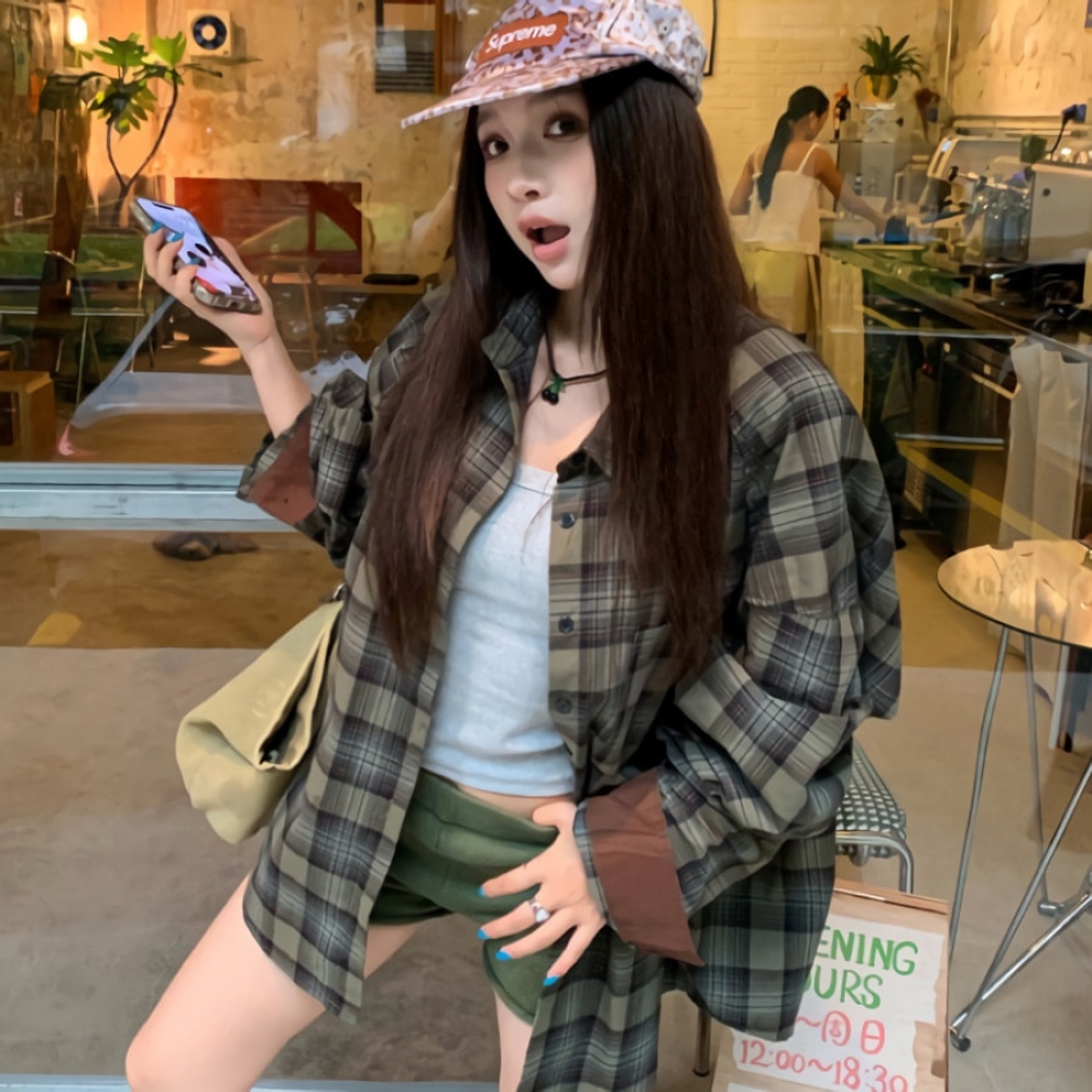 여성 가을 겨울 프림 오버핏 체크 셔츠 점퍼