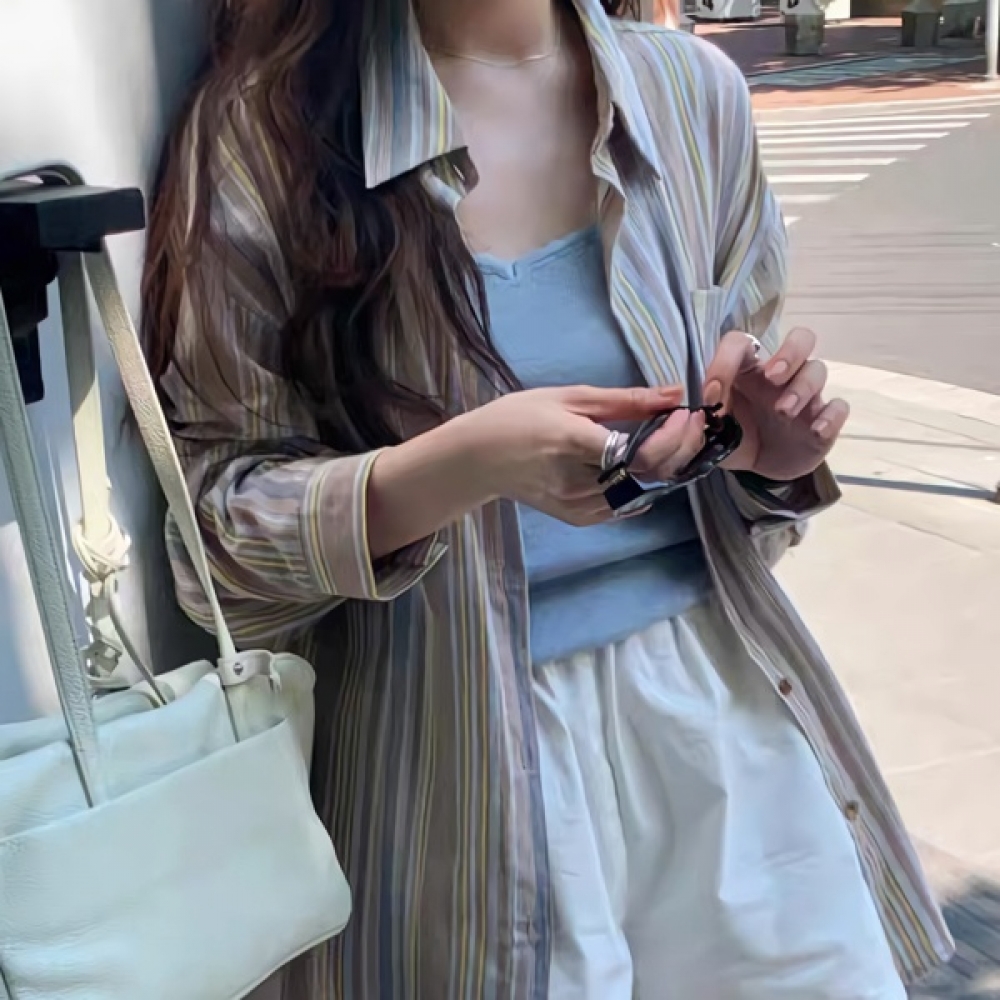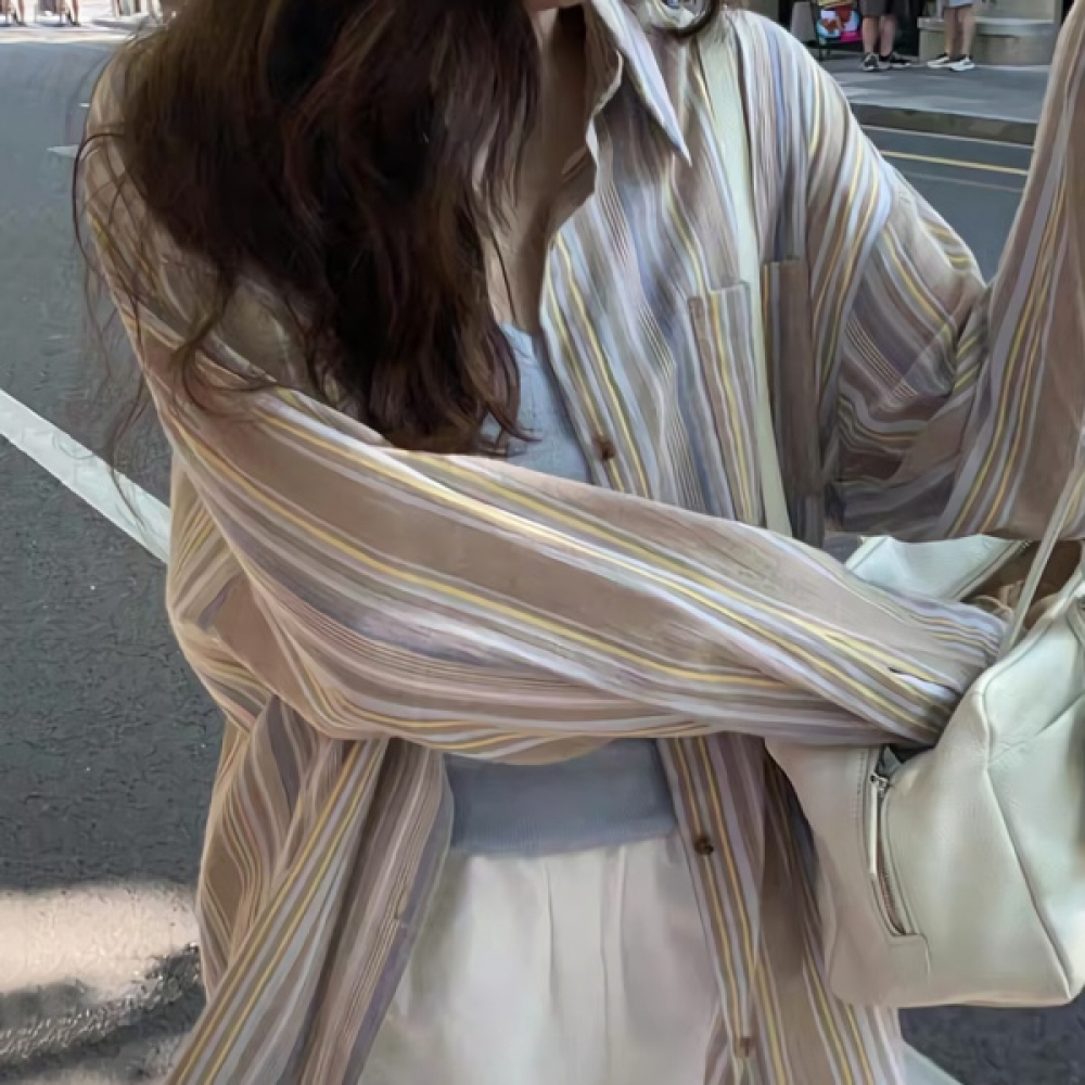 여성 가을 겨울 데일리 스트라이프 셔츠