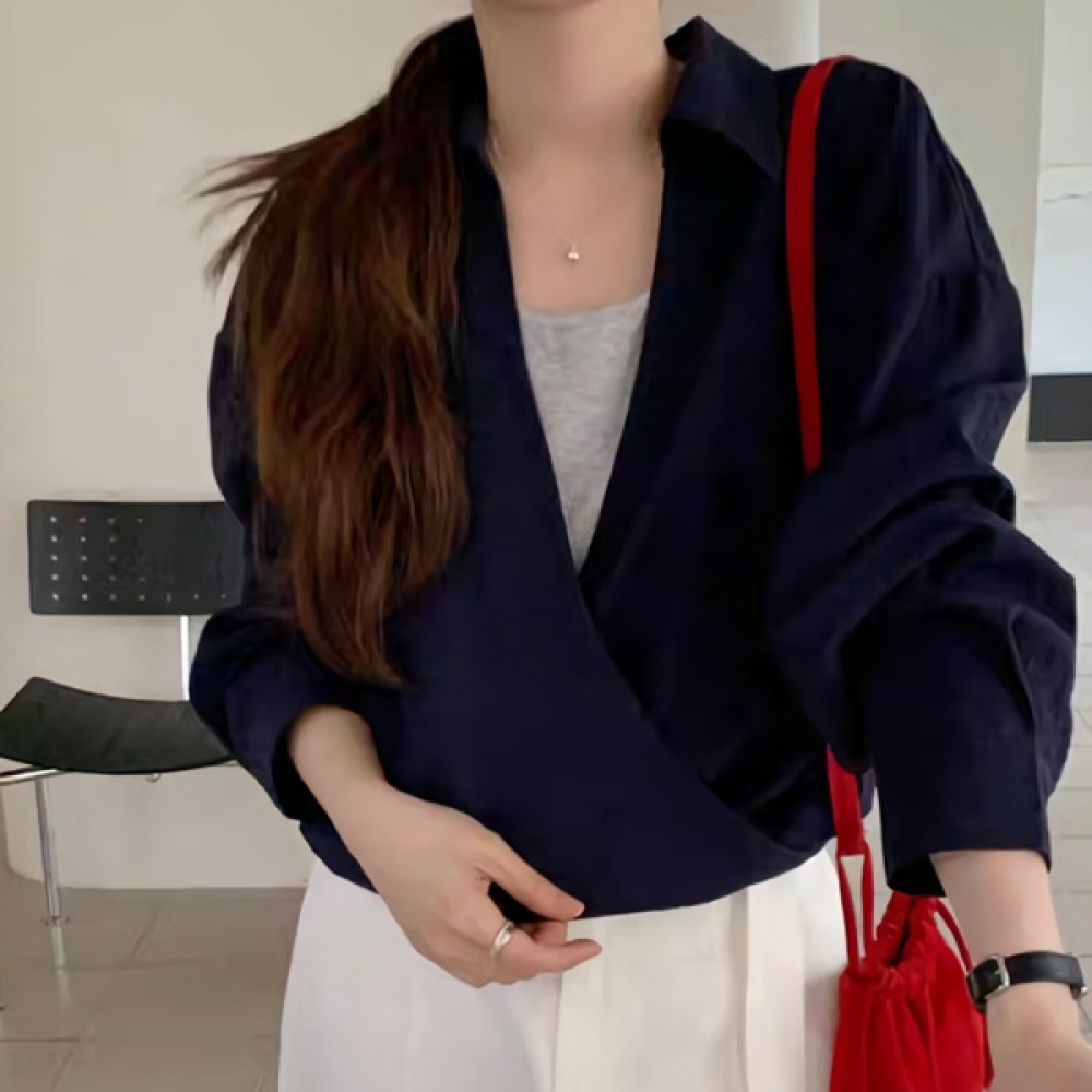 여성 가을 겨울 데일리 레이어드 랩 셔츠