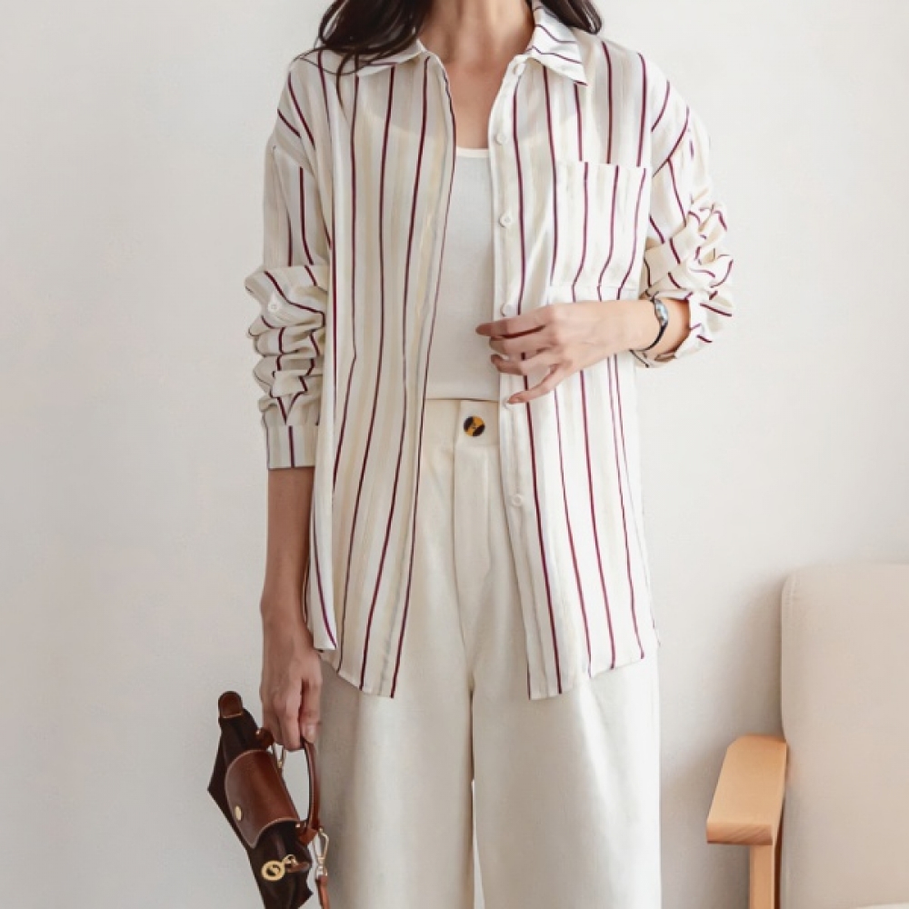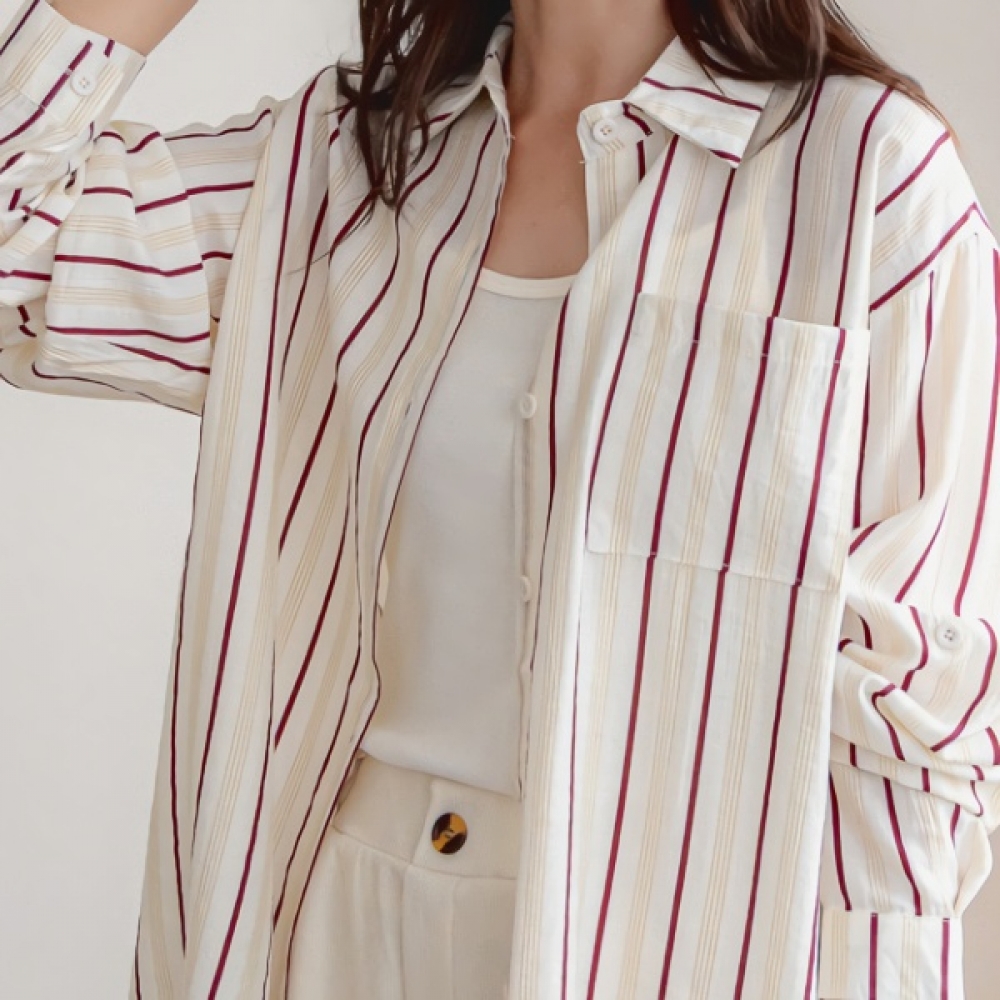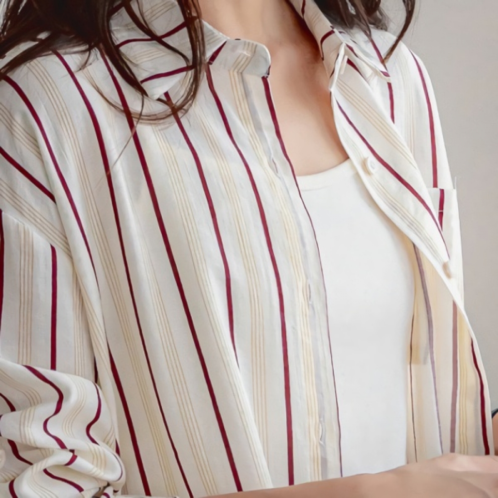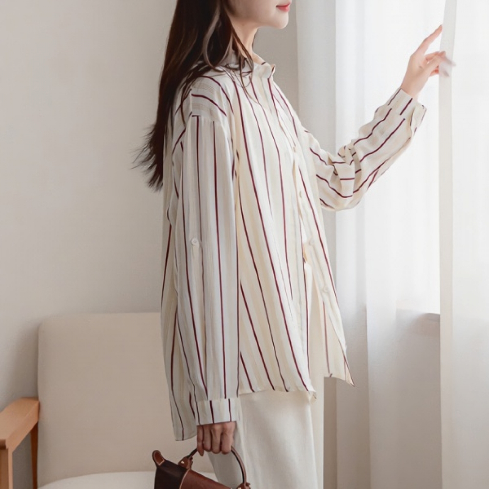 여성 스트라이프 롤업 베이직 남방 셔츠