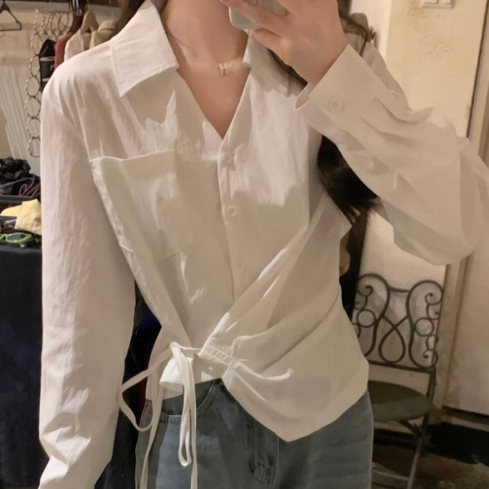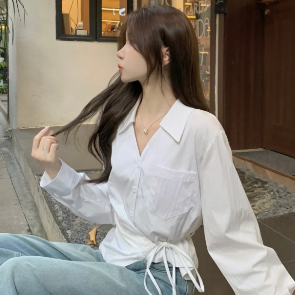 여성 가을 겨울 데일리 카라 언발 스트링 셔츠