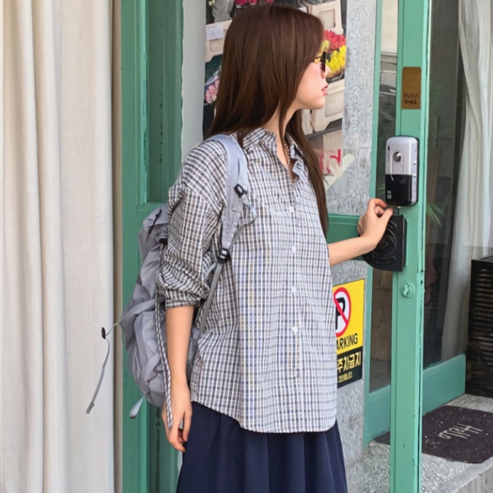여성 가을 겨울 오버핏 긴팔 체크셔츠