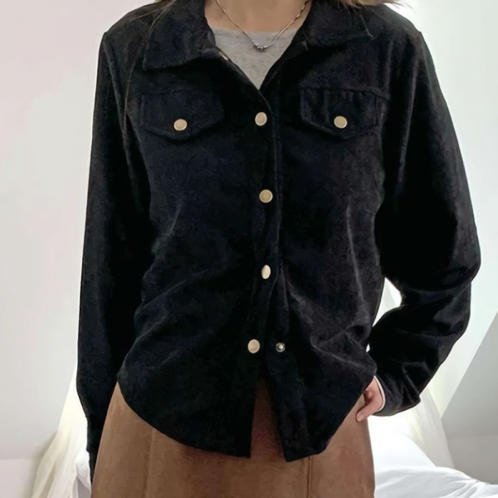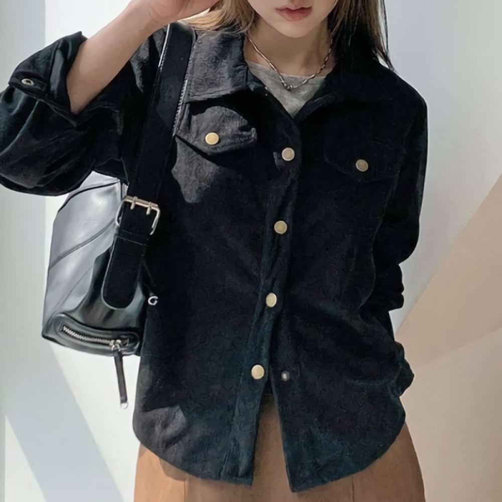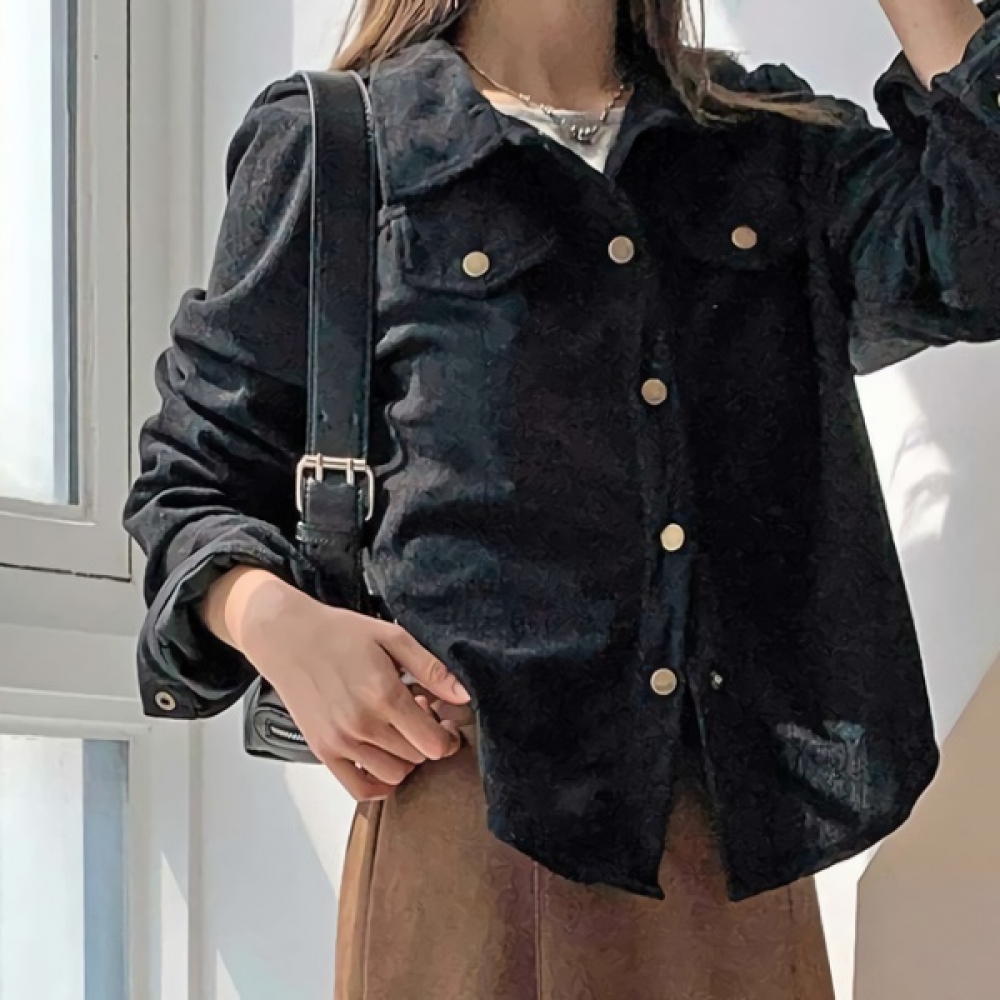 여성 투포켓 세미 크롭 슬림 골덴 셔츠