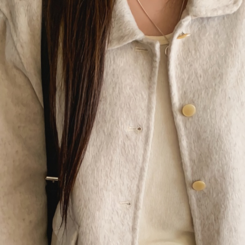 여성 핸드메이드 포켓 울 카라 숏코트