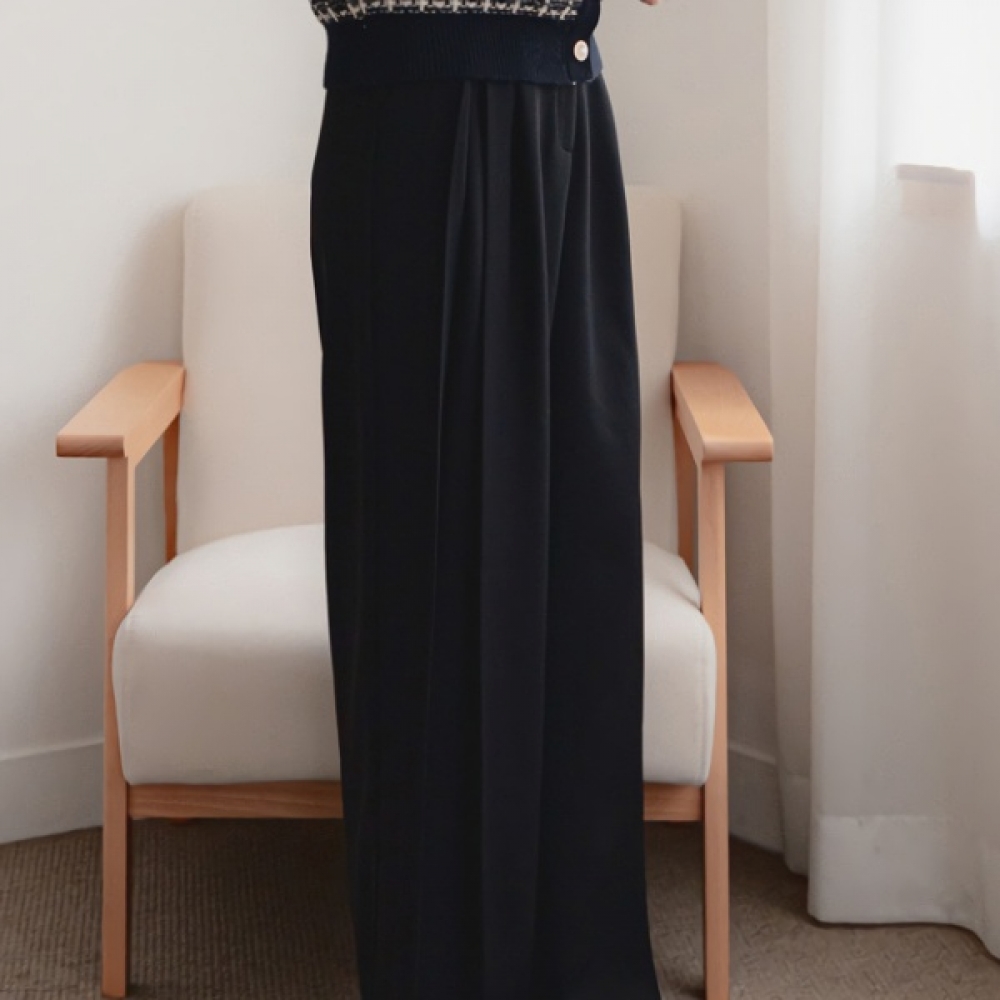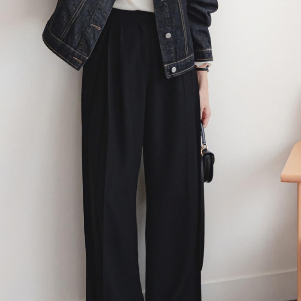 여성 링닝 맞주름 핀턱 세미와이드 슬랙스 팬츠