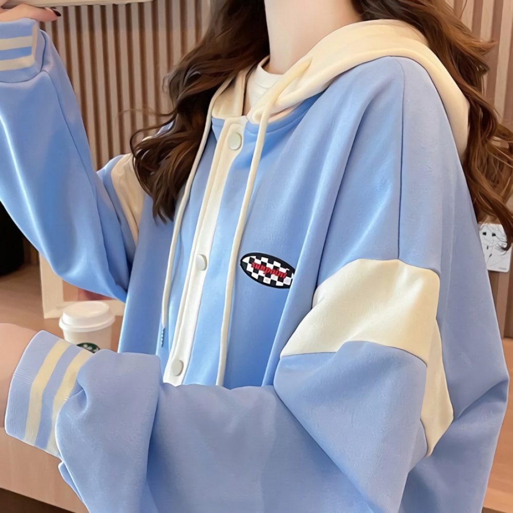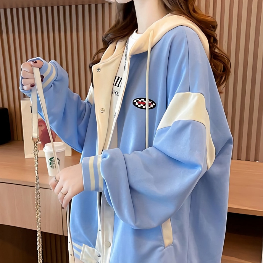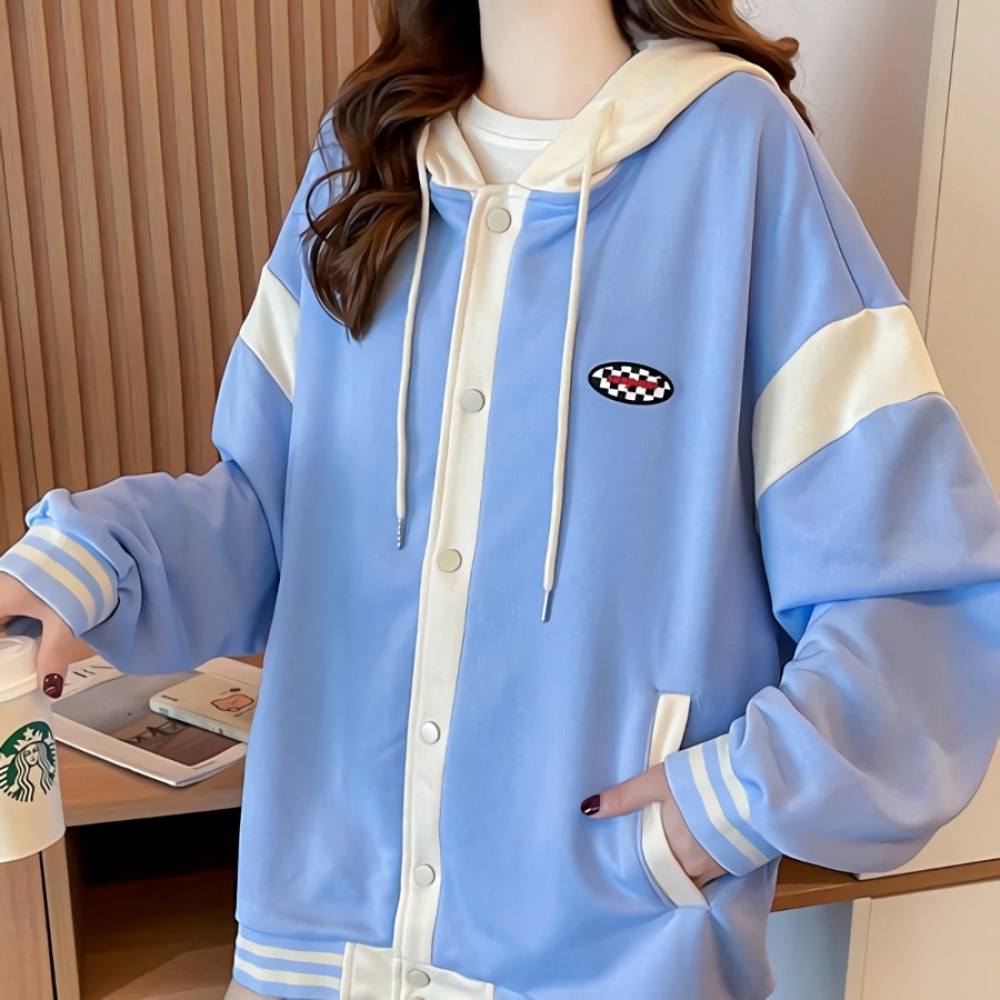 여성 캐주얼 루즈핏 후드 바시티 자켓