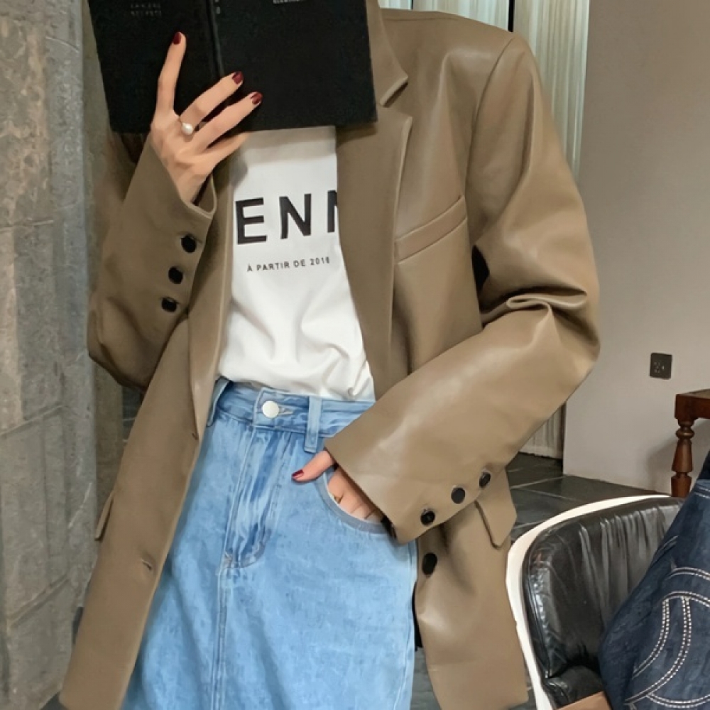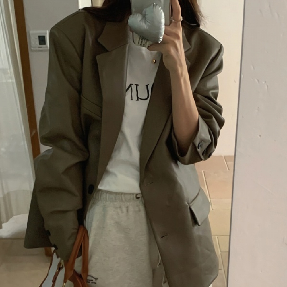 여성 가을 겨울 데일리 레더 루즈핏 자켓